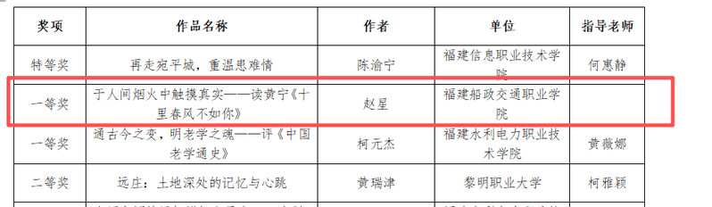 據(jù)悉,本次大賽共收到來(lái)自65所成員館讀者書(shū)評(píng)作品3541篇。經(jīng)各參賽館初評(píng)、專(zhuān)家復(fù)評(píng),共評(píng)選出高職高專(zhuān)院校組特等獎(jiǎng)1名,一等獎(jiǎng)2名,二等獎(jiǎng)10名,三等獎(jiǎng)20名,優(yōu)秀獎(jiǎng)28名。