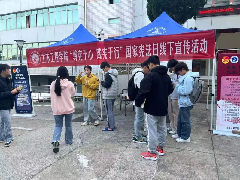 學院積極拓展宣傳教育渠道,推動憲法學習從課堂走向生活、從文本走向?qū)嵺`。土木工程學院走進福航園學生社區(qū),開展“尊憲于心,踐憲于行”主題宣傳活動,志愿者結(jié)合學生生活實際,系統(tǒng)解讀憲法中關(guān)于公民權(quán)利保障的核心條款,引導同學們理解如何運用法律武器維護自身合法權(quán)益,樹立“尊重知識、保護創(chuàng)新”的法治觀念。此外,學院還常態(tài)化舉辦法律咨詢沙龍,為師生提供面對面的法律咨詢服務(wù),將普法教育融入日常。