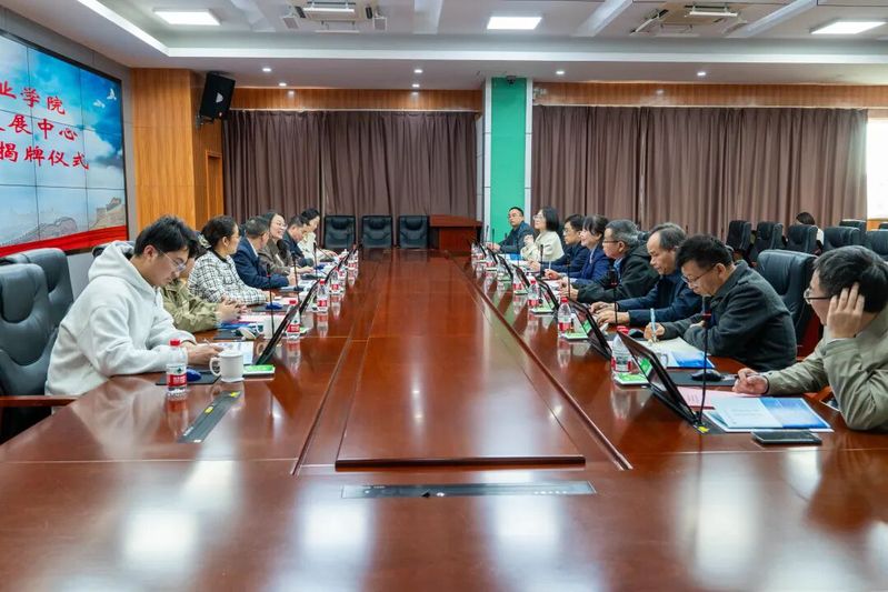 會上,陳群院長與林一斌主任共同為鄉(xiāng)村振興服務(wù)中心揭牌,全體與會人員合影留念。