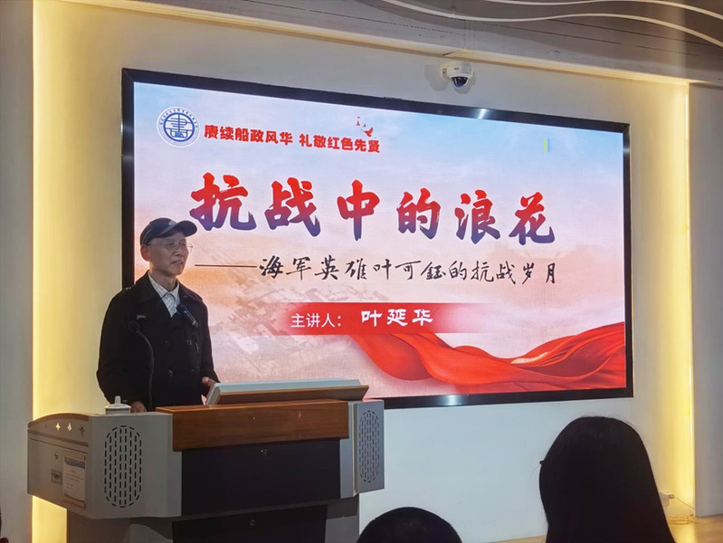 活動(dòng)中,葉延華為師生帶來(lái)專題講座《抗戰(zhàn)中的浪花——海軍英雄葉可鈺的抗戰(zhàn)歲月》,深情講述其父在民族危亡之際挺身而出、以身許國(guó)的英雄事跡。