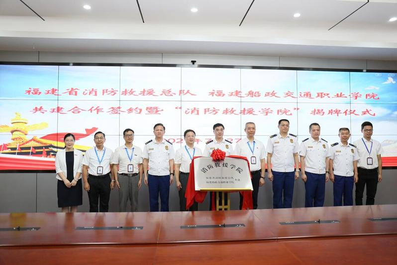 7月27日上午,我院與福建省消防救援總隊共建合作簽約暨“消防救援學院”揭牌儀式在學院第一會議室舉行。福建省消防救援總隊黨委書記、政治委員賴世雄,總隊黨委委員、副總隊長陳立民,總隊黨委委員、政治部主任陳培志,福建船政交通職業(yè)學院黨委書記張海明,黨委副書記、院長陳錦輝,黨委副書記陳宜大,黨委委員、副院長張祖柱出席儀式。學院黨委委員、副院長陳艷紅主持儀式,福建消防救援總隊政治部各處室干部和訓保支隊指戰(zhàn)員代表,學院相關(guān)職能部門、二級學院相關(guān)負責人及安全與環(huán)境學院教師代表參加。