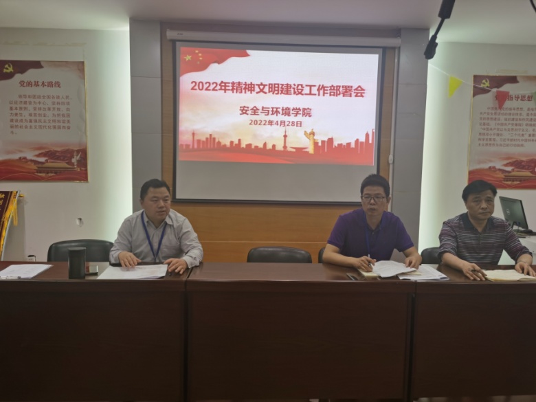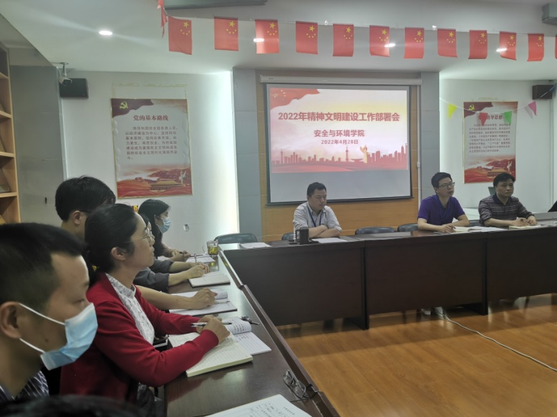 2022年4月28日下午,根據(jù)學(xué)院的部署,為學(xué)習(xí)貫徹習(xí)近平總書(shū)記關(guān)于精神文明建設(shè)工作的重要講話(huà)重要指示精神,貫徹落實(shí)中央文明委《關(guān)于深化新時(shí)代文明單位創(chuàng)建工作的意見(jiàn)》和省文明辦、廳文明辦工作部署,安全與環(huán)境學(xué)院召開(kāi)精神文明工作部署會(huì)議。會(huì)議由安全與環(huán)境學(xué)院院長(zhǎng)陳明仙主持,全院教職工參加了會(huì)議。