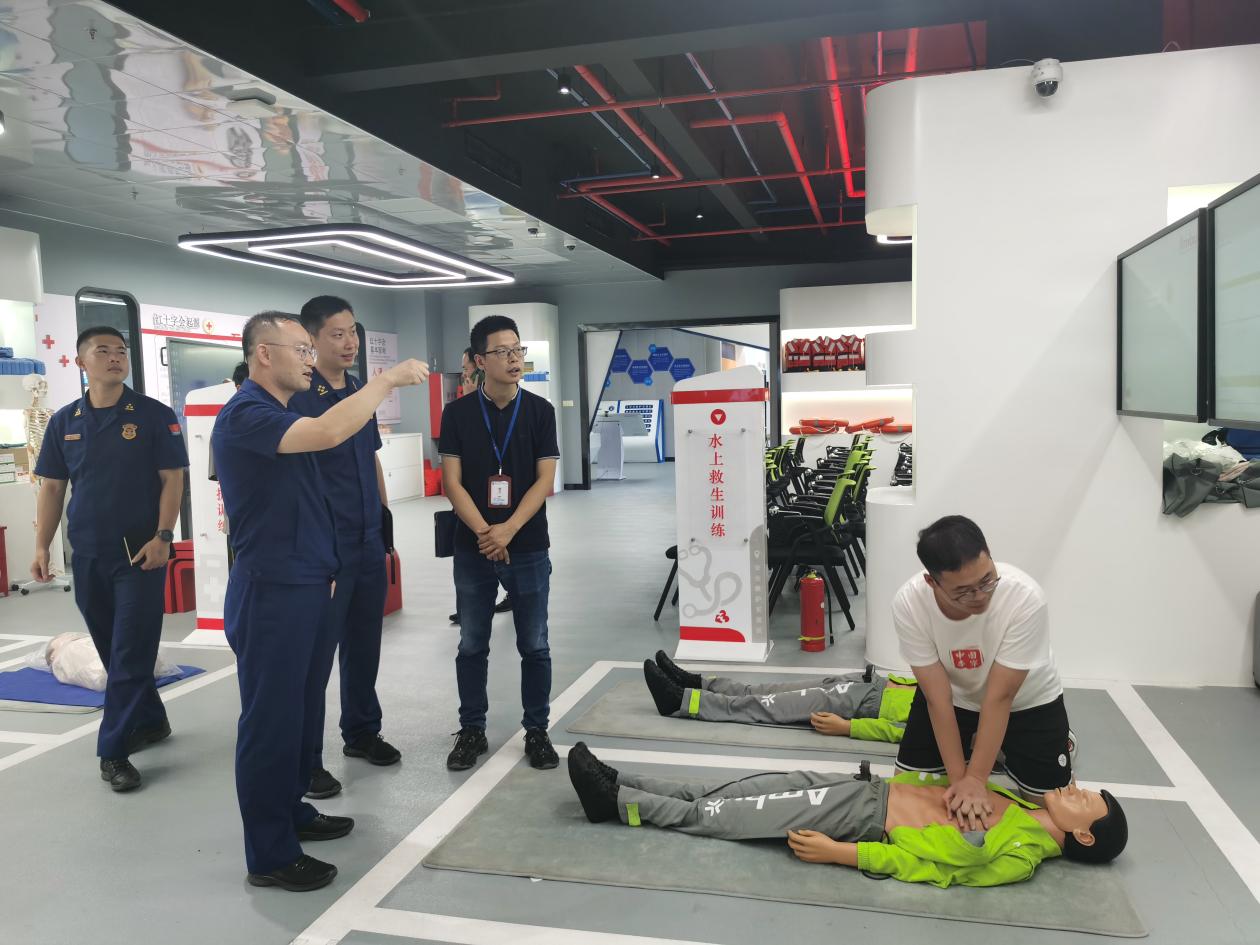 陳明仙院長先陪同王斌主任一行參觀了公共安全產(chǎn)教融合實訓(xùn)基地、智慧安全工地實訓(xùn)室、應(yīng)急救援訓(xùn)練中心等教學(xué)實訓(xùn)場所。
