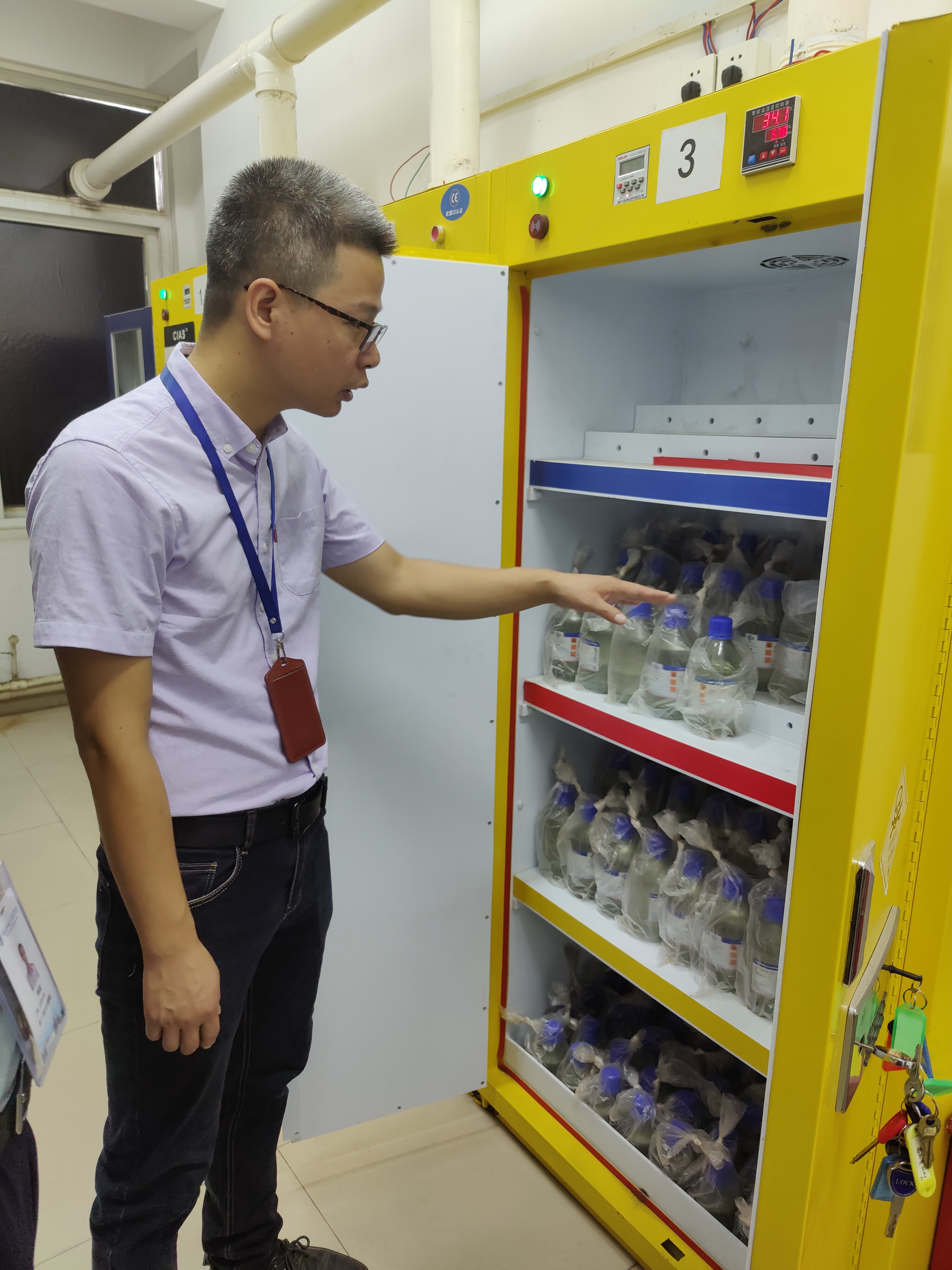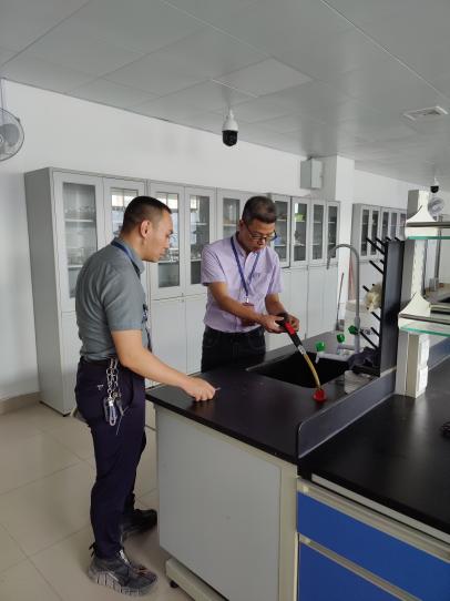為進一步做好2022年秋季學期實驗室安全工作,有效防范各類安全事故發(fā)生,確保實驗室安全。8月30日上午,我院陳明仙院長帶隊和實訓中心成員對學院各實驗室進行了安全檢查,實地查看了?;反鎯芾?、用電安全、環(huán)境衛(wèi)生、消防設施、疫情防控及開學前實驗室準備工作等情況,核實了實驗室安全隱患整改情況。對本次檢查中存在的問題提出了整改要求,并要求按期整改,嚴防各類事故發(fā)生。