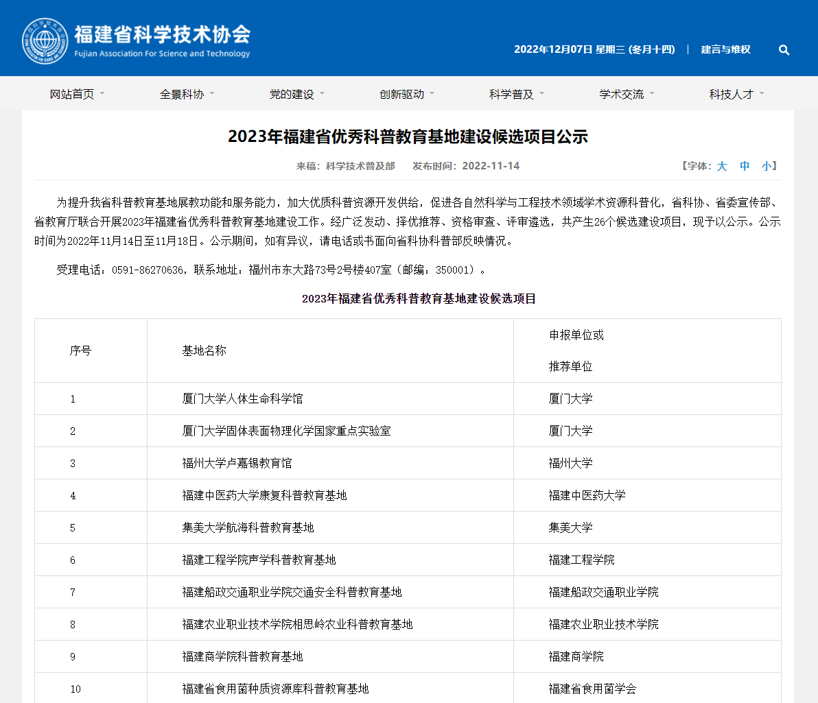 2022年8月底-9月初,在校領導的關心支持下,安全與環(huán)境學院積極籌備,完成“福建省優(yōu)秀科普教育基地”申報工作。經(jīng)福建省科學技術協(xié)會考察遴選,獲批“福建省優(yōu)秀科普教育基地”建設。