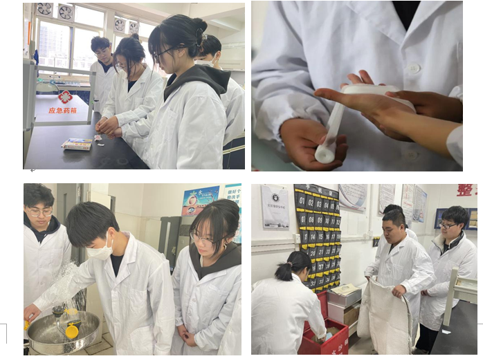 本次演練內(nèi)容主要針對(duì)本學(xué)院各個(gè)實(shí)驗(yàn)室常見的事故類型進(jìn)行模擬,包括模擬實(shí)驗(yàn)室實(shí)驗(yàn)過程操作失誤,導(dǎo)致燙傷、危化品飛濺到皮膚、冒煙起火疏散等事故,參演師生按預(yù)案開展有序撤離、現(xiàn)場(chǎng)封鎖、事故危害評(píng)估、事故有序上報(bào)、應(yīng)急救援人員的個(gè)人防護(hù)、消除危險(xiǎn)源、現(xiàn)場(chǎng)恢復(fù)和應(yīng)急逃生等規(guī)范化應(yīng)急處置流程,結(jié)合演練還進(jìn)行了消防知識(shí)和逃生知識(shí)培訓(xùn)與演示。