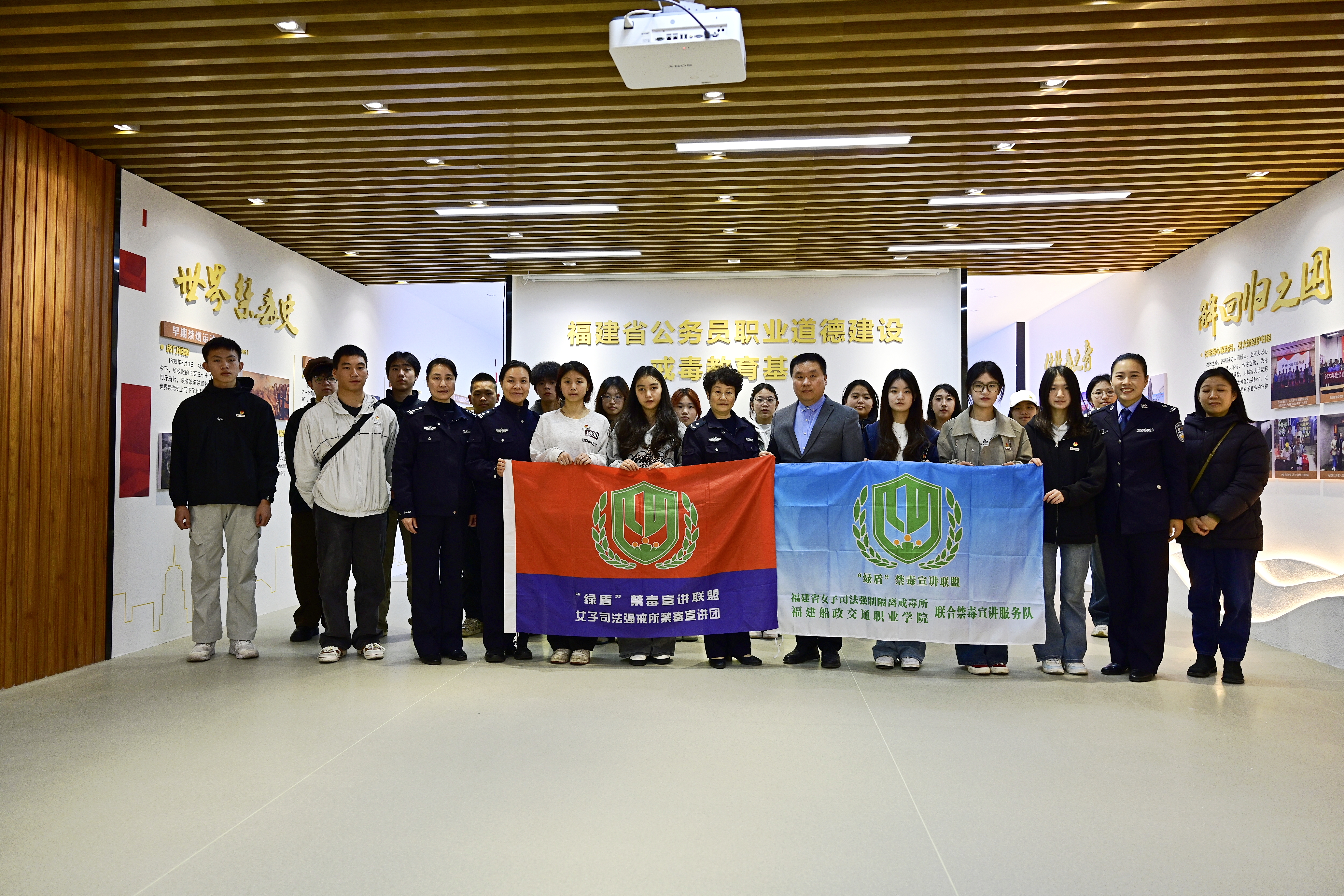 同學們參觀了福建省公務員職業(yè)道德建設戒毒教育基地,觀看實物展陳并聽取案例講解。隨后,民警為學生作禁毒宣講培訓講座。