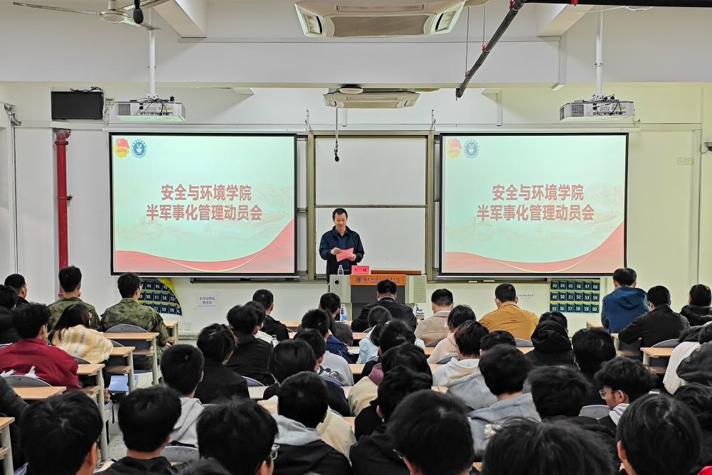 為全面落實立德樹人根本任務,培養(yǎng)學生良好行為習慣與堅韌意志,2025年11月28日,安全與環(huán)境學院在創(chuàng)新樓202教室召開半軍事化管理動員大會。學院黨總支書記林栩、黨總支織委員彭志允、應急救援技術專業(yè)教研室主任王超及全體教師、輔導員和2025級應急救援技術專業(yè)學生參加會議,會議由王超主持。