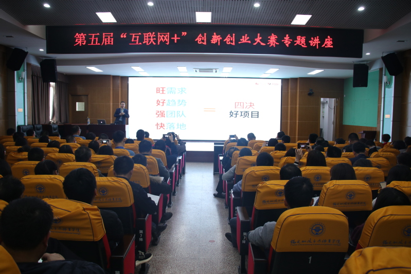 2019年3月27日下午,在學術報告廳舉行第五屆“互聯(lián)網+”大學生創(chuàng)新創(chuàng)業(yè)大賽專題講座。本次講座特邀了紅袍天使創(chuàng)始合伙人、文華貞觀創(chuàng)始人兼CEO、北京大學福建校友會常務副秘書長、省教育廳福建省大學生創(chuàng)新創(chuàng)業(yè)基地創(chuàng)業(yè)導師曹明浩先生。學院相關部門、各系主任、書記、教研室主、創(chuàng)新創(chuàng)業(yè)指導教師等共370人到場聽講。