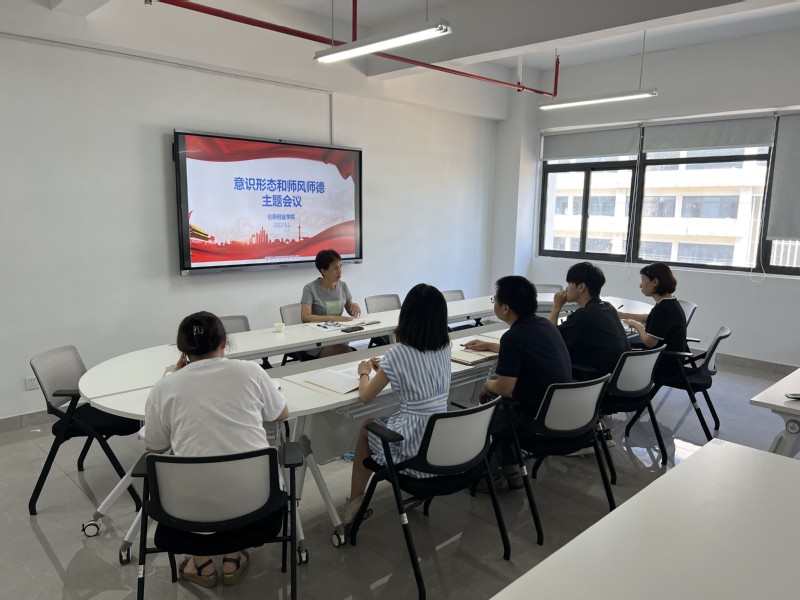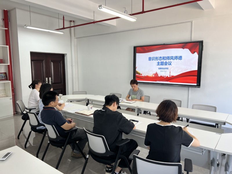 為進(jìn)一步加強(qiáng)師德師風(fēng)建設(shè),增強(qiáng)教職工意識(shí)形態(tài)工作的緊迫感和使命感,營(yíng)造風(fēng)清氣正的育人環(huán)境和良好的輿論氛圍,2022年9月2日上午,創(chuàng)新創(chuàng)業(yè)學(xué)院組織全院教職工召開師德師風(fēng)建設(shè)與意識(shí)形態(tài)工作專題會(huì)議,分析研判學(xué)院意識(shí)形態(tài)工作和教師思想政治工作,提出加強(qiáng)師德師風(fēng)建設(shè)和意識(shí)形態(tài)工作的重要性和必要性。會(huì)議由學(xué)院院長(zhǎng)林霞主持。學(xué)院副院長(zhǎng)王登清、學(xué)院全體教職工參加會(huì)議。