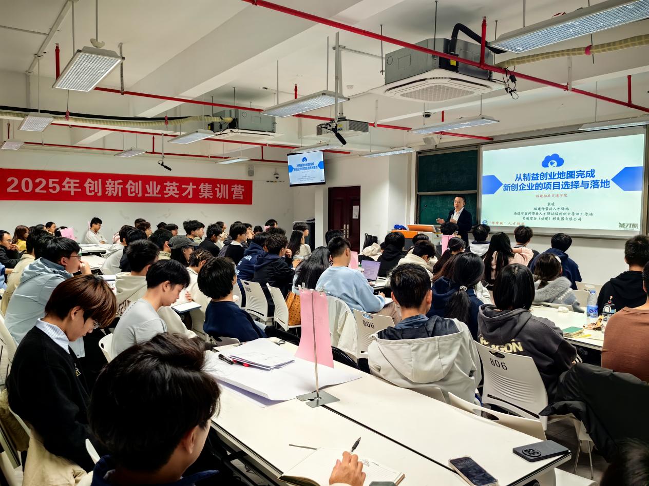 為進(jìn)一步激發(fā)青年學(xué)生創(chuàng)新活力,提升創(chuàng)賽項(xiàng)目核心競(jìng)爭(zhēng)力,助力優(yōu)質(zhì)創(chuàng)業(yè)項(xiàng)目落地孵化,2025年11 月 26 日至 27 日我院在藝新樓 806 成功舉辦2025創(chuàng)新創(chuàng)業(yè)英才集訓(xùn)營(yíng)活動(dòng),本次集訓(xùn)吸引全校 9 個(gè)二級(jí)學(xué)院 85 名優(yōu)秀學(xué)生報(bào)名參與,易道智谷(福建)孵化器有限公司董事長(zhǎng)、天使投資人、創(chuàng)業(yè)導(dǎo)師袁凌擔(dān)任本次集訓(xùn)活動(dòng)主講導(dǎo)師。