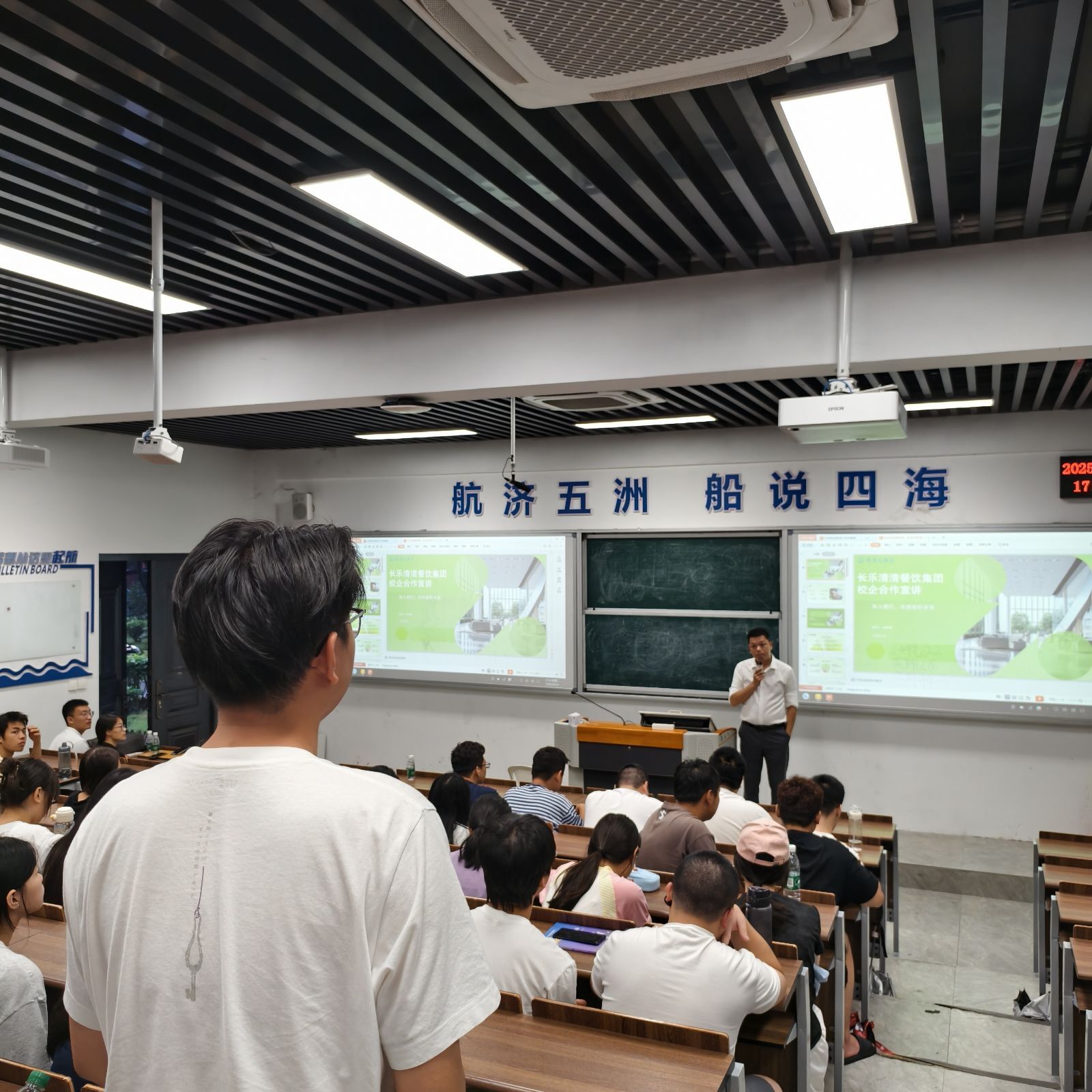 隨后,長樂清清大酒店人事經(jīng)理從本土酒店運(yùn)營視角出發(fā),介紹了酒店的發(fā)展規(guī)模、特色業(yè)務(wù)。長樂清清大酒店作為區(qū)域知名酒店,在餐飲、住宿等板塊獨(dú)具優(yōu)勢。人事經(jīng)理針對酒店各崗位需求,如前廳接待、餐飲服務(wù)等,詳細(xì)解讀了崗位要求與職業(yè)發(fā)展方向,并分享了酒店的人才培養(yǎng)體系與員工福利,讓同學(xué)們對本地酒店行業(yè)有了更直觀、深入的認(rèn)識。