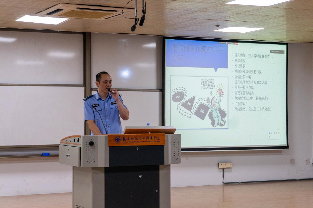 為提升全院學(xué)生的反詐意識(shí)與識(shí)騙能力,筑牢校園安全防線,2025年9月25日,土木工程學(xué)院特邀福州市公安局對(duì)湖派出所吳恒強(qiáng)警官擔(dān)任主講人,于福船園創(chuàng)新樓305教室舉辦“警惕電信詐騙,守護(hù)青春財(cái)富”主題防詐騙講座。講座同步在創(chuàng)新樓晚自習(xí)教室以及線上的班級(jí)群直播,確保我院全體學(xué)生可以實(shí)時(shí)觀看并掌握反詐知識(shí)。