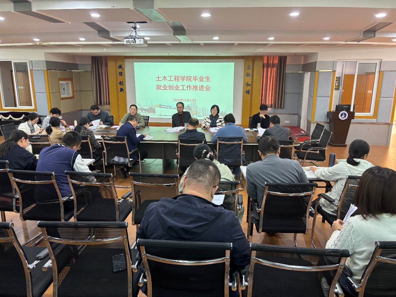 為進(jìn)一步做好2026屆畢業(yè)生就業(yè)創(chuàng)業(yè)工作相關(guān)部署,2025年12月17日,土木工程學(xué)院于創(chuàng)新樓1007會(huì)議室召開(kāi)2026屆畢業(yè)生就業(yè)創(chuàng)業(yè)工作推進(jìn)會(huì)。學(xué)院領(lǐng)導(dǎo)班子、各教研室主任及全體輔導(dǎo)員參加本次會(huì)議,會(huì)議由黨總支副書(shū)記任穎卿主持。