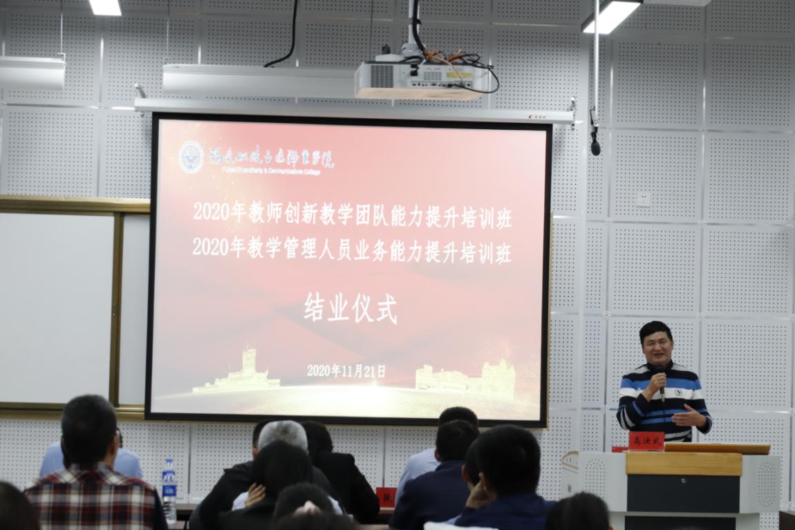 最后培訓(xùn)班各組對此次培訓(xùn)進(jìn)行分組總結(jié)匯報(bào),高汝武副校長做總結(jié)發(fā)言,他對此次培訓(xùn)的效果充分肯定,對參加培訓(xùn)的教師提出殷切要求。通過舉辦教學(xué)創(chuàng)新教學(xué)團(tuán)隊(duì)能力提升培訓(xùn)班,促進(jìn)高水平結(jié)構(gòu)化團(tuán)隊(duì)建設(shè),提高學(xué)?!半p師型”教師隊(duì)伍建設(shè)水平,深化學(xué)校教師、教材、教法“三教”改革,為“雙高建設(shè)”、模塊化教學(xué)改革、課程思政等師資建設(shè)提供有力支持。