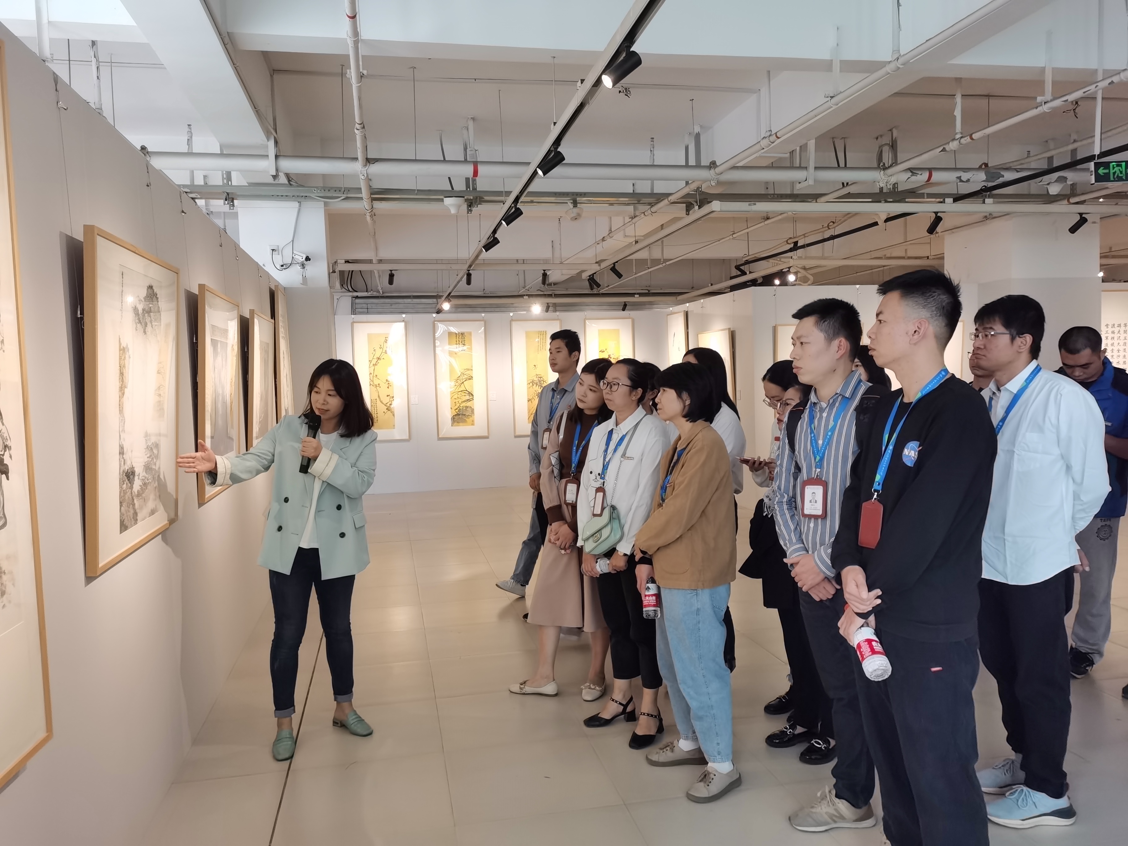 參觀完校史館,新教師們來到黨風(fēng)廉政書畫作品展館,展館作品包含國畫、水彩、書法等種類,既有廉政、對聯(lián)、格言警句為內(nèi)容的詩詞,又有借物詠志的山水花鳥等畫作,給新教師們帶來了一場藝術(shù)盛宴。