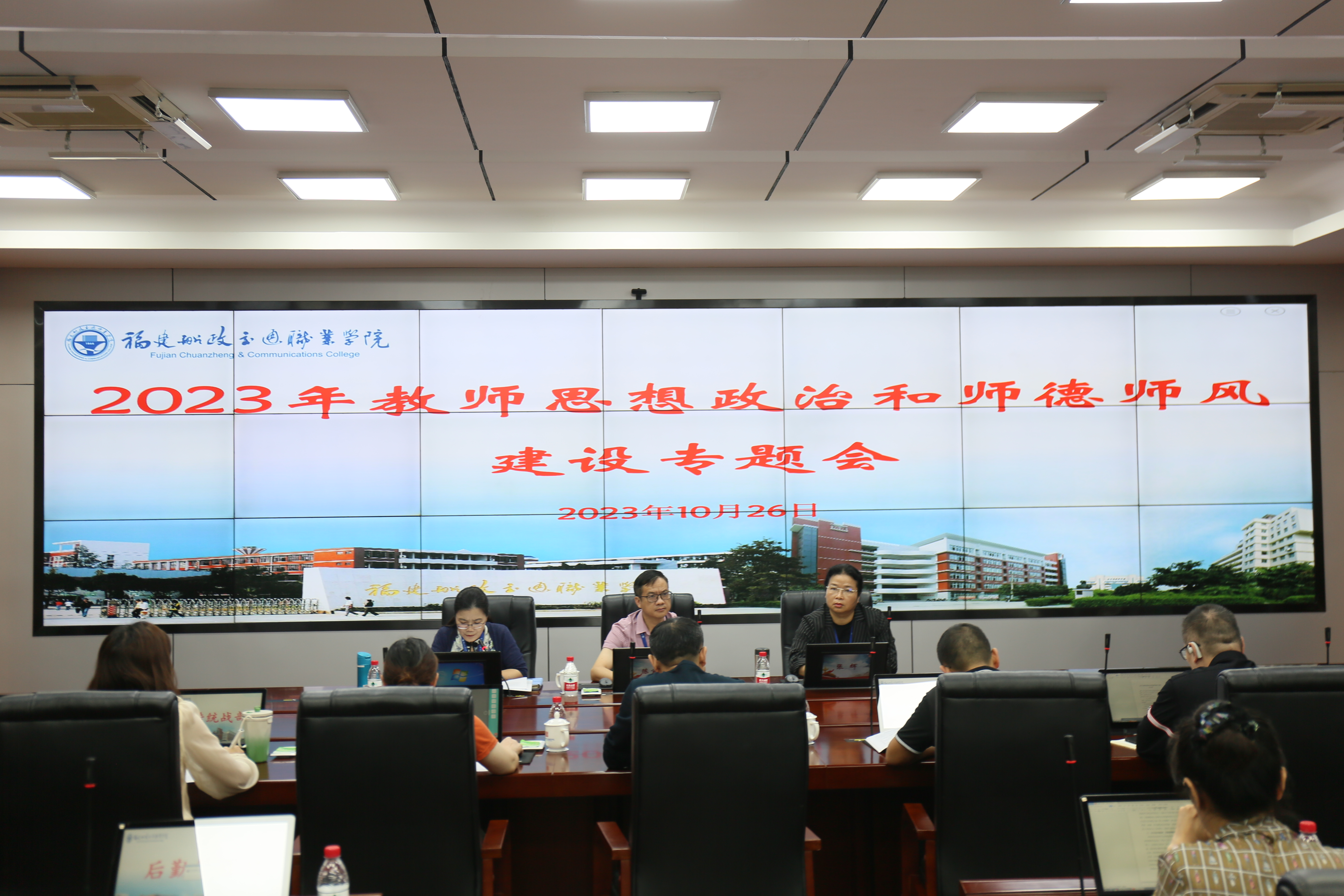 隨后,教師工作部(處)對(duì)2023年上半年學(xué)院教師思想政治和師德師風(fēng)建設(shè)情況進(jìn)行了總結(jié)匯報(bào),分析了當(dāng)前存在的問題,并對(duì)下半年學(xué)院思想政治和師德師風(fēng)建設(shè)工作進(jìn)行了具體的部署。