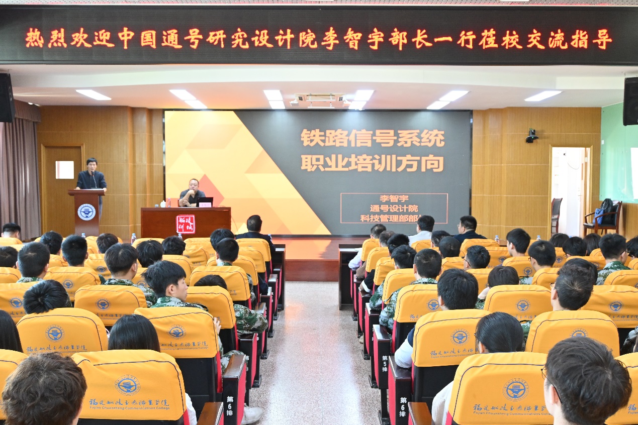 座談會(huì)后,李智宇部長為軌道學(xué)院的全體師生作了題為《鐵路信號(hào)系統(tǒng)職業(yè)培訓(xùn)方向》的講座。講座中,李智宇部長分析了國內(nèi)外軌道交通信號(hào)系統(tǒng)的發(fā)展方向,并針對(duì)信號(hào)系統(tǒng)職業(yè)培訓(xùn)特點(diǎn),在培養(yǎng)專業(yè)人才、教師服務(wù)企業(yè)的切入點(diǎn)等方面提供了良好建議,深入淺出、分析透徹,得到了現(xiàn)場(chǎng)師生的一致好評(píng)。講座現(xiàn)場(chǎng),軌道交通學(xué)院陳天炎院長為李智宇部長頒發(fā)了特聘專家聘書,聘請(qǐng)李智宇部長作為軌道交通學(xué)院的特聘專家指導(dǎo)和參與學(xué)院的專業(yè)建設(shè),深化校企合作,提升人才培養(yǎng)質(zhì)量。