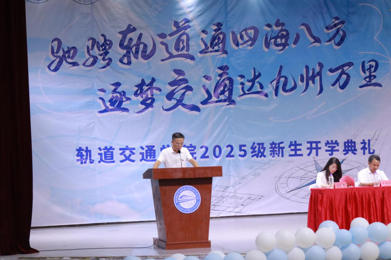 “希望同學們在大學期間,結交兩個‘摯友’——一個是操場,一個是圖書館。”軌道交通學院院長陳天炎在致辭中,用親切的比喻為新生指引方向。他鼓勵同學們走出宿舍,在操場揮灑汗水、強健體魄;走進圖書館,在書頁間汲取知識、開闊眼界,以健康的身心與扎實的學識,為未來的軌道事業(yè)打下堅實基礎。