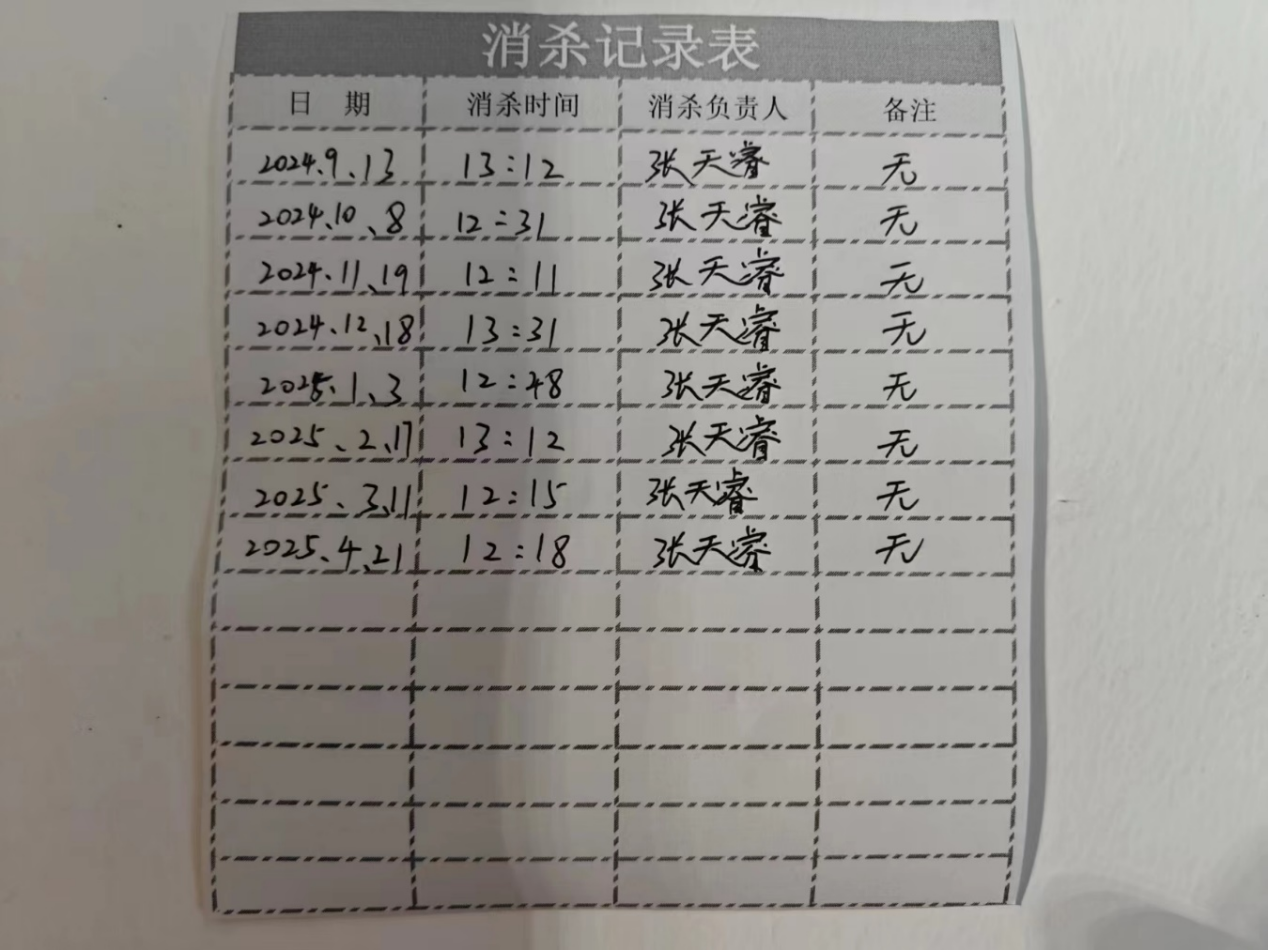 每次消殺完成后,志愿者們都會認(rèn)真填寫詳細(xì)的記錄表,注明消殺日期、責(zé)任人、消毒劑濃度和作業(yè)時間。這些記錄表被張貼在每臺洗衣機(jī)旁的醒目位置,同學(xué)們可以隨時查看,了解最新消殺情況。這種開放式管理贏得了同學(xué)們的信任,也讓服務(wù)過程始終處于監(jiān)督之下。