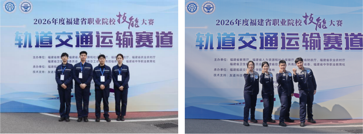 1月12日,2026年度福建省職業(yè)院校技能大賽“軌道交通運輸”賽道在福建船政交通職業(yè)學院圓滿落下帷幕。經過為期兩天的激烈角逐,我院兩支代表隊(一隊選手:李瑋杰、王希盈、林智賢、曾振檳;二隊選手:鄭萬強、周清蘭、李豪、顧悅晗)憑借扎實的操作技能、默契的團隊配合,在18支參賽隊中脫穎而出,分別榮獲金獎、銀獎(賽道總分排名第1、2),為我院爭得了榮譽。