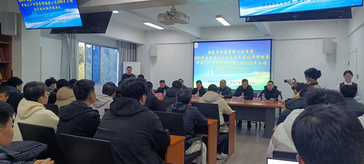 2026年1月23日上午,由福建船政交通職業(yè)學(xué)院軌道交通學(xué)院承辦的“福建省交通系統(tǒng)工匠學(xué)院2025年福建省施工測(cè)量技術(shù)高級(jí)研修班暨中鐵二十四局集團(tuán)福建公司2026年工程測(cè)量培訓(xùn)班”在福建船政交通職業(yè)學(xué)院校友樓軌道學(xué)院三樓會(huì)議室順利開(kāi)班。中鐵二十四局集團(tuán)福建公司總工程師林劍忠、工程管理部部長(zhǎng)洪淮斌、黨委干部部副部長(zhǎng)王燁、測(cè)繪中心主任曾志鑫,學(xué)校工會(huì)常務(wù)副主席、福建省交通系統(tǒng)工匠學(xué)院副院長(zhǎng)王雪梅、軌道交通學(xué)院黨政領(lǐng)導(dǎo)、中鐵二十四局集團(tuán)福建公司全體培訓(xùn)學(xué)員、軌道交通學(xué)院教師代表及工作人員參加儀式。開(kāi)班儀式由軌道交通學(xué)院副院長(zhǎng)陳宏意主持。