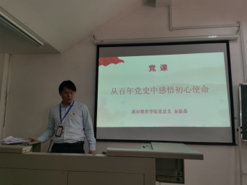 3月17日下午,我院黨總支副書記金晶晶以“從百年黨史中感悟初心使命”為題,為總支全體黨員上黨課。