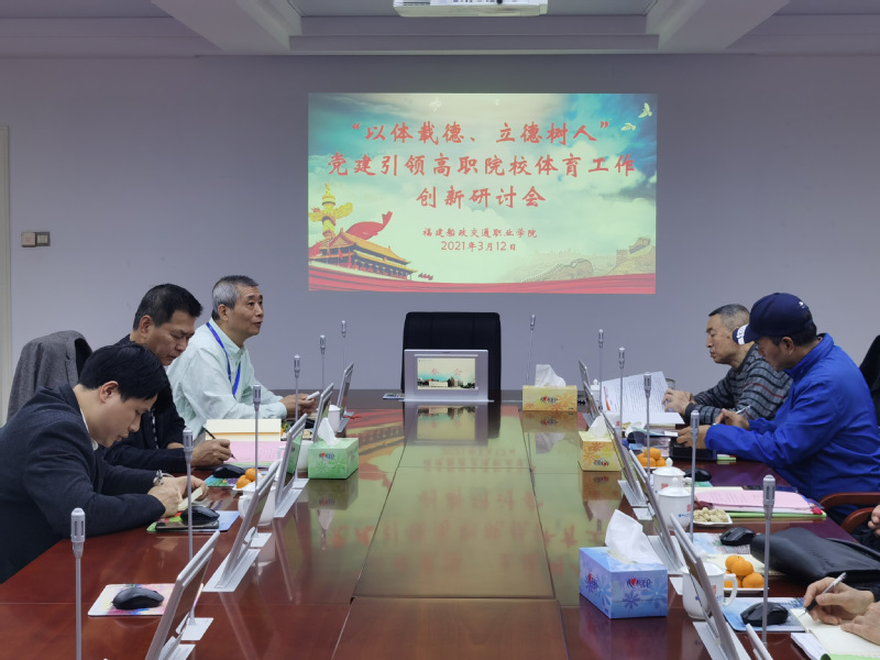 3月12日下午,通識教育學(xué)院召開“以體載德、立德樹人”黨建引領(lǐng)高職院校體育工作創(chuàng)新研討會,會議邀請?jiān)=ㄊ〗逃龔d體衛(wèi)藝語處正處級調(diào)研員江仁虎、集美大學(xué)體育學(xué)院鄭旭旭教授、福建師范大學(xué)體育科學(xué)學(xué)院張涵勁教授、福州大學(xué)體育部彭雪涵教授、福建農(nóng)林大學(xué)體育部黃國龍教授、福建醫(yī)科大學(xué)體育部董華教授等專家,學(xué)院黨委書記張海明、通識教育學(xué)院院長方儒欽、副院長金晶晶和郭建忠參加會議。