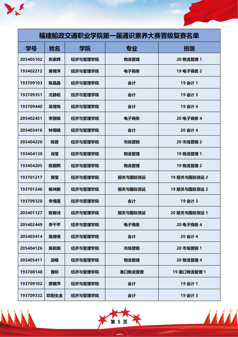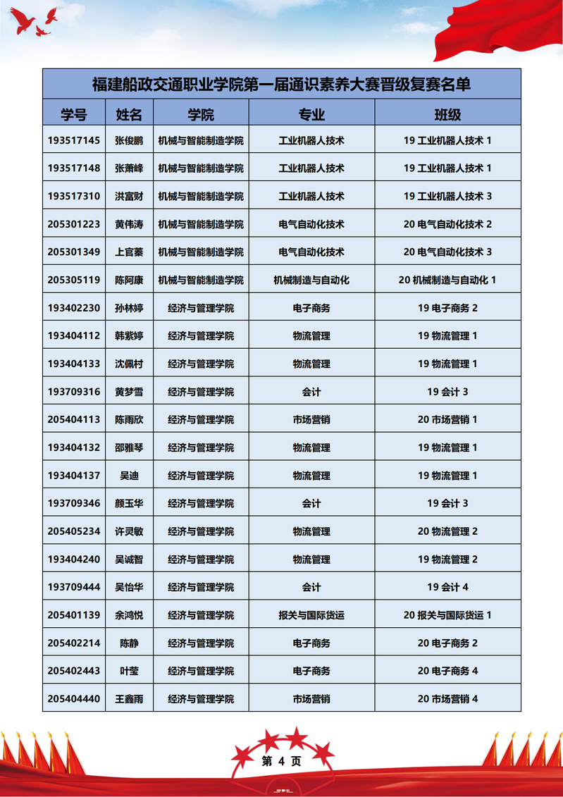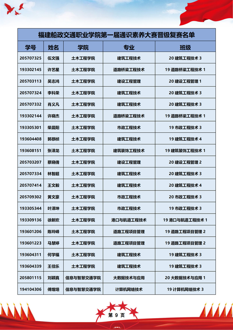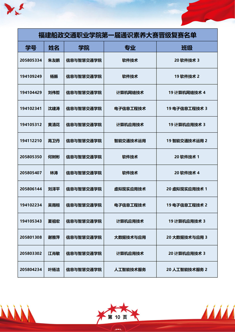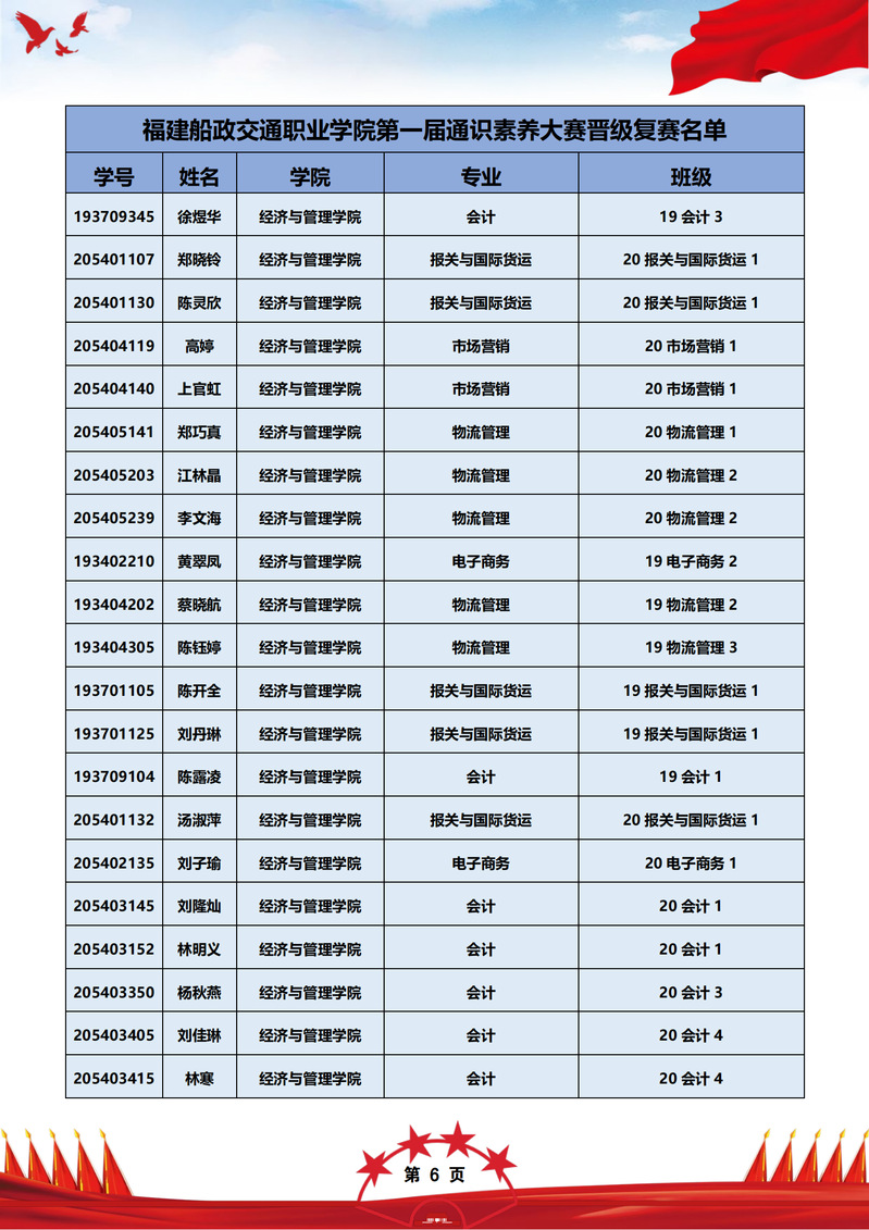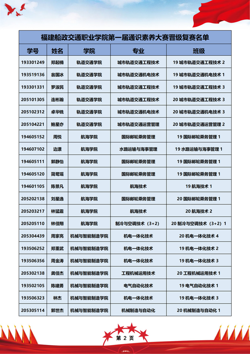 福建船政交通職業(yè)學(xué)院第一屆通識(shí)素養(yǎng)大賽初賽晉級復(fù)賽名單