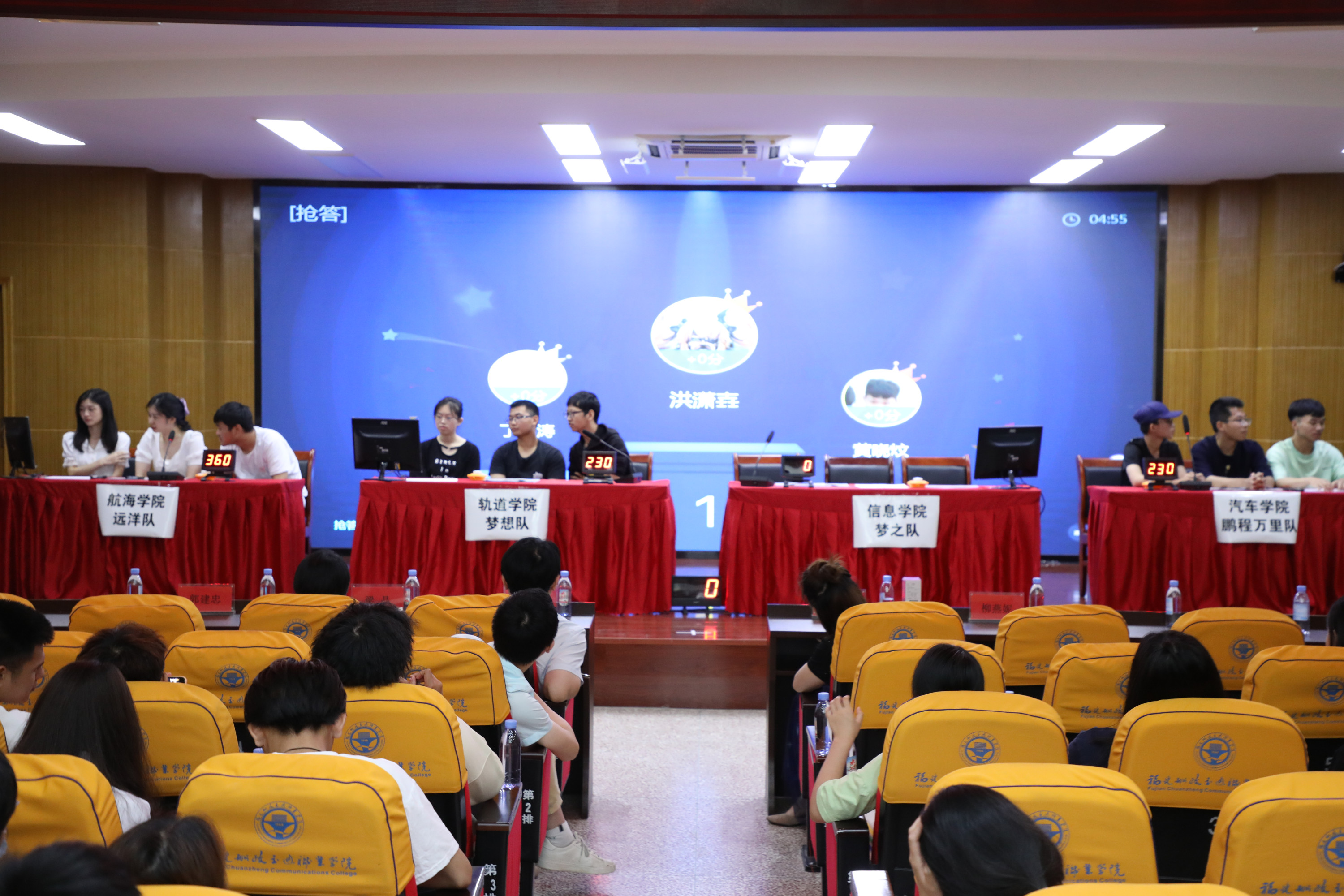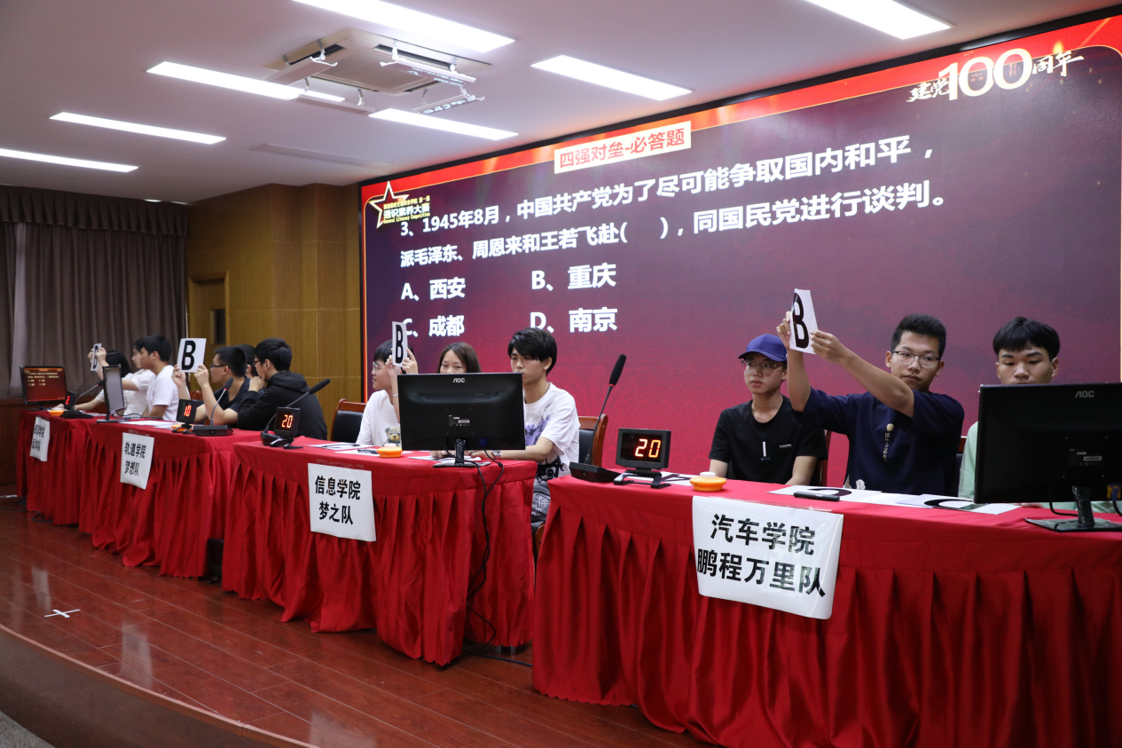 比賽環(huán)節(jié)環(huán)環(huán)相扣,激動人心。第二環(huán)節(jié)的搶答比拼更加激烈,航海學(xué)院一路領(lǐng)先,軌道交通學(xué)院保持第二,汽車學(xué)院一路趕超,最后一刻與軌道交通學(xué)院比分持平。在卷軸加時環(huán)節(jié)汽車學(xué)院反超軌道學(xué)院進(jìn)入爭霸賽。