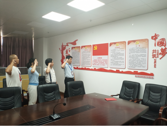 面向莊嚴(yán)的黨旗,3名黨員同志在總支副書記金晶晶帶領(lǐng)下,舉起右拳,莊嚴(yán)宣誓。伴隨著一句句鏗鏘有力的誓言,通識教育學(xué)院黨總支“給黨員過政治生日”活動在重溫入黨誓詞的儀式中拉開帷幕。3名黨員入黨日期均為7月份,黨齡23年的陳占通同志回顧了近二十年來黨的歷程和社會進(jìn)步,曹會勇同志詳細(xì)講述入黨時(shí)的情形,7月1日入黨的江逸同志表示此次活動進(jìn)一步增強(qiáng)了黨員榮譽(yù)感、歸屬感。最后,黨總支向3位黨員贈送“政治生日”賀卡。