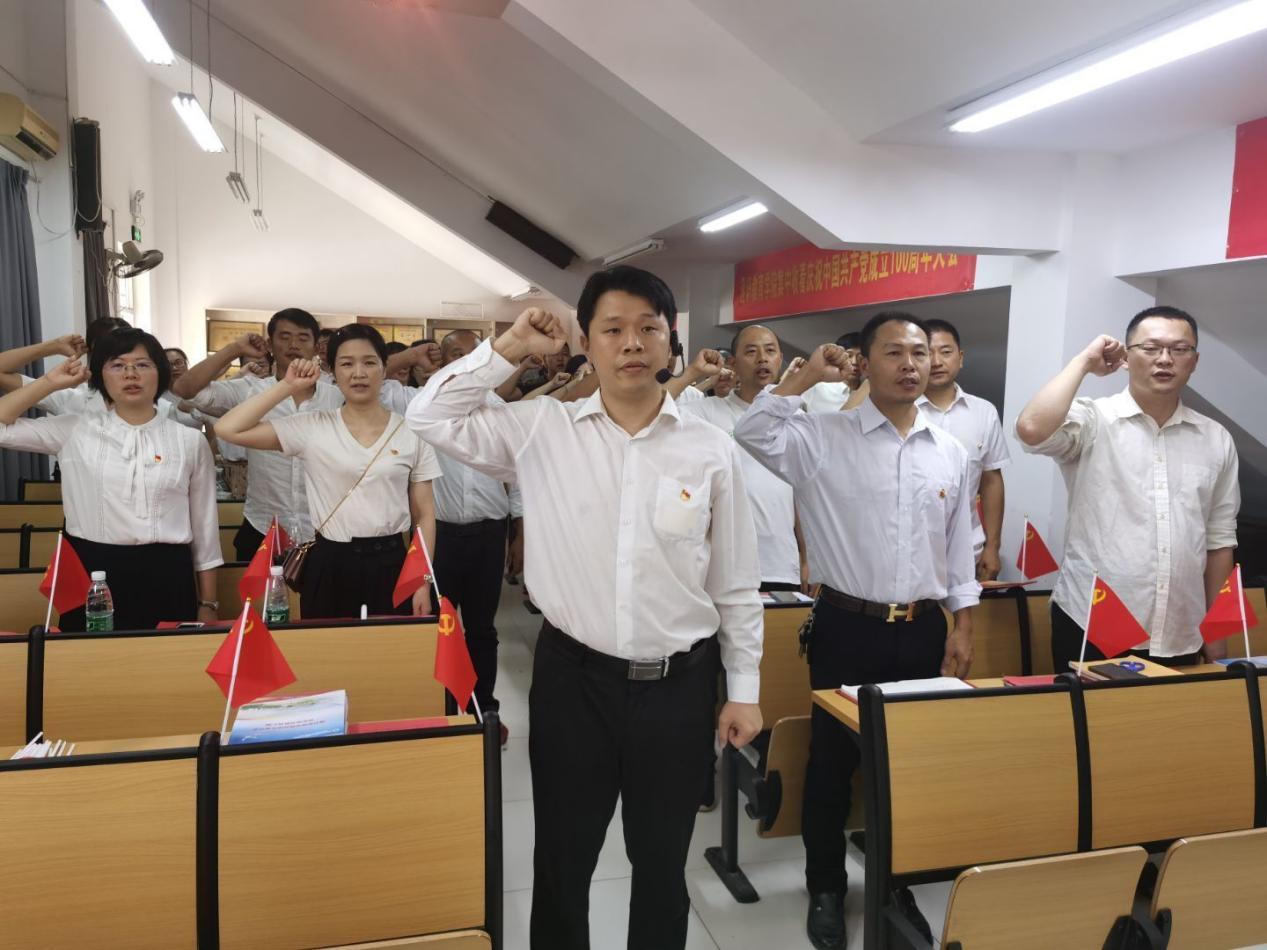 面向莊嚴(yán)的黨旗,黨員教師們?cè)诳傊Ц睍浗鹁ЬьI(lǐng)下,舉起右拳,莊嚴(yán)宣誓。伴隨著一句句鏗鏘有力的誓言,“我志愿加入中國共產(chǎn)黨,擁護(hù)黨的綱領(lǐng),遵守黨的章程,履行黨員義務(wù),執(zhí)行黨的決定,嚴(yán)守黨的紀(jì)律,保守黨的秘密,對(duì)黨忠誠,積極工作,為共產(chǎn)主義奮斗終身,隨時(shí)準(zhǔn)備為黨和人民犧牲一切,永不叛黨?!痹S貴福、陳占通、陳無競等老黨員同志紛紛表示作為黨員教師,不忘初心使命,增強(qiáng)黨性觀念,發(fā)揮黨員先鋒模范作用;要講政治、顧大局,勇于承擔(dān)工作責(zé)任,為黨的事業(yè)和教育事業(yè)不懈奮斗。