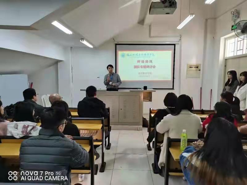 12月1日下午,通識教育學(xué)院在體育教研部教室召開師德團隊專題研討活動,通識教育學(xué)院師德師風(fēng)建設(shè)團隊出席,各二級學(xué)院學(xué)生代表參加,會議由通識教育學(xué)院金晶晶副院長主持。金晶晶、曾雅琴、沈焰焰、甘媛、吳婷婷、黃愛梅、林佳麗、閆建瑞、許貴福、趙少杰等團隊教師先后交流發(fā)言,介紹教師職業(yè)生涯成長經(jīng)歷,分享師德學(xué)習(xí)體會和感悟。