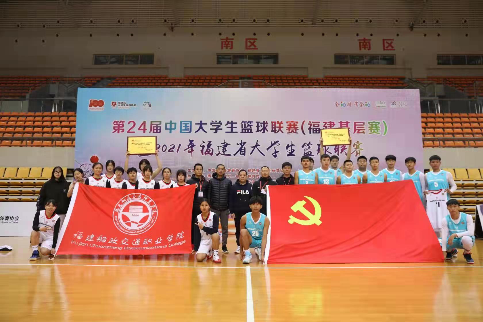 第24屆中國(guó)大學(xué)生籃球聯(lián)賽(福建基層賽)暨2021福建省大學(xué)生籃球聯(lián)賽高職高專組于12月21-28日在三明市沙縣區(qū)舉行,賽事由中國(guó)大學(xué)生體育協(xié)會(huì)和福建省大學(xué)生體育協(xié)會(huì)主辦,三明市體育局和三明市沙縣區(qū)人民政府承辦,共有22支男隊(duì)、15支女隊(duì)參賽。經(jīng)過(guò)激烈角逐,我院男女籃以全勝戰(zhàn)績(jī)蟬聯(lián)冠軍,雙雙獲得代表福建省高職院校參加第24屆中國(guó)大學(xué)生籃球聯(lián)賽全國(guó)賽的資格。
