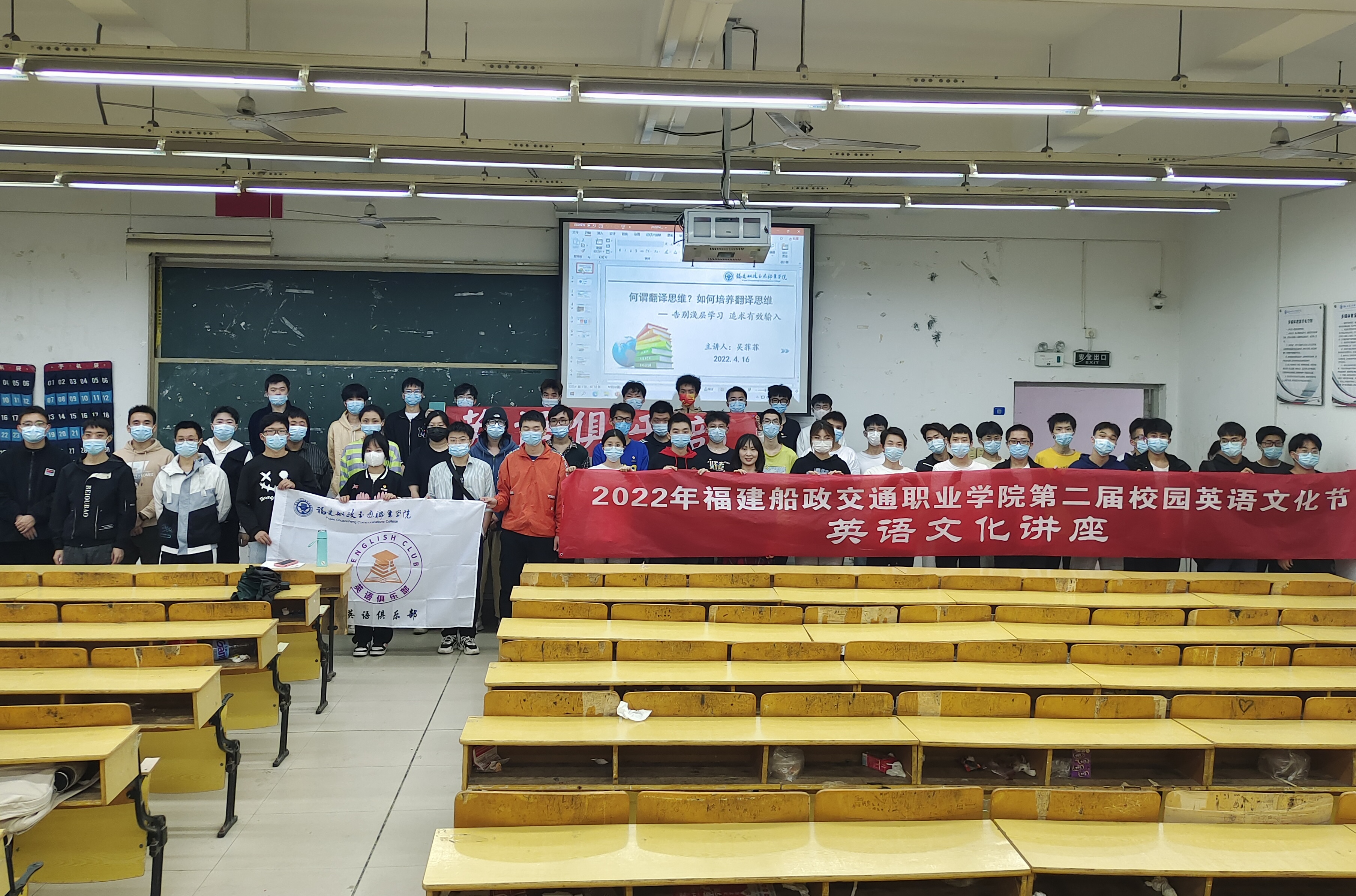 為落實立德樹人的根本任務(wù),提高學(xué)生的職場涉外溝通能力和多元文化交流能力,提升英語語言思維。2022年4月16日周六下午,英語俱樂部指導(dǎo)老師—吳菲菲在北區(qū)26號樓602舉辦了題為《何謂翻譯思維?如何培養(yǎng)翻譯思維—告別淺層學(xué)習(xí),追求有效輸入》的講座,共153位學(xué)生報名參加,本次講座拉開了第二屆英語文化節(jié)的序幕。