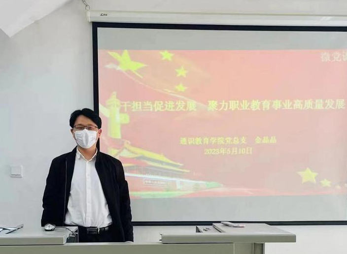 最后,通識教育學(xué)院黨總支副書記、副院長金晶晶以《實干擔(dān)當(dāng)促發(fā)展,聚力職業(yè)教育事業(yè)高質(zhì)量發(fā)展》為題上專題黨課。金晶晶圍繞學(xué)習(xí)貫徹習(xí)近平新時代中國特色社會主義思想主題教育“專題三:實干擔(dān)當(dāng)促進發(fā)展——構(gòu)建高質(zhì)量教育體系,加快推進教育強省建設(shè)”,結(jié)合理論學(xué)習(xí),強化學(xué)以致用,談對學(xué)科建設(shè)的認(rèn)識與實踐。