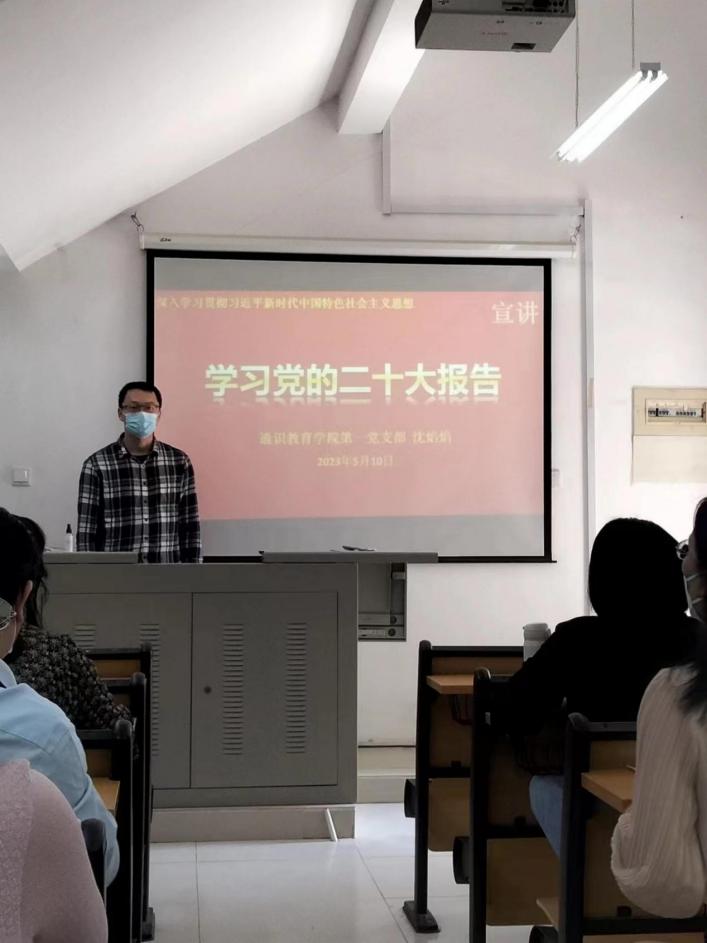 首先,沈焰焰以《學(xué)習(xí)黨的二十大報告》為題,為支部全體黨員上專題黨課。沈焰焰從中國共產(chǎn)黨第二十次全國代表大會主題、“三個務(wù)必”、“六個必須堅持”等方面,認(rèn)真解讀黨的二十大報告的主題和主要內(nèi)容,內(nèi)容豐富,深入淺出。