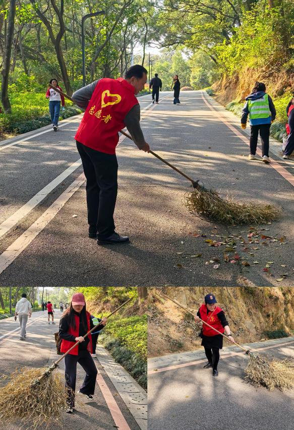 活動伊始,通識教育學(xué)院黨總支書記陳火城做動員講話,強(qiáng)調(diào)黨員要立足實際、服務(wù)群眾,將理論學(xué)習(xí)轉(zhuǎn)化為實踐行動。全體黨員身著紅色志愿馬甲,攜帶掃帚、垃圾夾、垃圾袋等工具,沿步道清掃落葉、撿拾紙屑和塑料瓶;深入綠化帶,徒手拔除雜草、整理枯枝,并對草坪進(jìn)行平整維護(hù)。黨員們分工協(xié)作,經(jīng)過兩小時的辛勤勞動,整治綠化區(qū)域500余平方米,公園環(huán)境煥然一新。