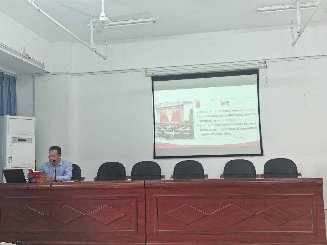 黨總支書記陳火城圍繞黨的二十屆三中全會內(nèi)容,組織學(xué)習(xí)黨的二十屆三中全會主題,學(xué)習(xí)領(lǐng)會習(xí)近平總書記在黨的二十屆三中全會上的重要講話精神,提出全力以赴抓好全會精神貫徹落實(shí),提出下一步工作建議。他要求每位黨員同志都應(yīng)該認(rèn)真學(xué)、認(rèn)真思考,把思想和行動統(tǒng)一到中央精神上來,深刻領(lǐng)會全會提出的“進(jìn)一步全面深化改革、推進(jìn)中國式現(xiàn)代化”的戰(zhàn)略部署,領(lǐng)會“構(gòu)建高水平社會主義市場經(jīng)濟(jì)體制”“深化產(chǎn)教融合”等要求,強(qiáng)調(diào)高職公共基礎(chǔ)課需跳出傳統(tǒng)模式,應(yīng)主動對接產(chǎn)業(yè)需求與區(qū)域發(fā)展。