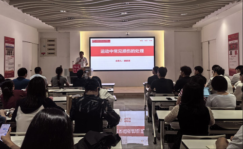 胡武清憑借多年臨床經(jīng)驗(yàn),系統(tǒng)講解了運(yùn)動損傷類型、運(yùn)動損傷的案例分析等內(nèi)容,通過生動的案例展示,他重點(diǎn)分析了踝關(guān)節(jié)扭傷、肌肉拉傷、膝關(guān)節(jié)損傷等常見運(yùn)動傷害的應(yīng)急處理“黃金法則”,并現(xiàn)場演示了RICE原則(休息、冰敷、加壓包扎、抬高患肢)的正確操作方法。針對大學(xué)生群體特點(diǎn),特別強(qiáng)調(diào)了運(yùn)動前的動態(tài)熱身、運(yùn)動中的自我保護(hù)意識以及運(yùn)動后的科學(xué)放松等預(yù)防措施。