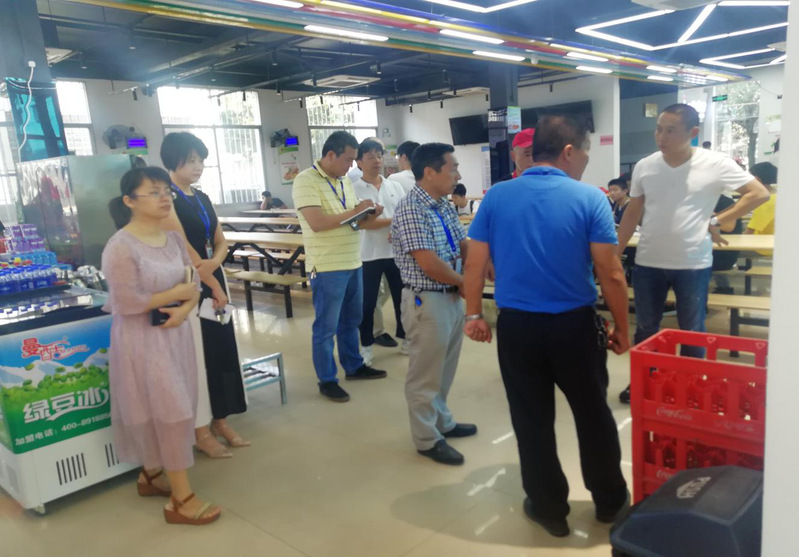 按照學(xué)院“保平安、迎大慶”安全專項(xiàng)工作部署,為進(jìn)一步加強(qiáng)食品安全監(jiān)管,確保師生飲食安全,2019年9月23日下午,學(xué)院張祖柱副院長(zhǎng)帶隊(duì),組織工會(huì)、院長(zhǎng)辦公室、學(xué)生處、后勤管理處、安全管理辦公室等部門負(fù)責(zé)人對(duì)學(xué)院各校區(qū)食堂進(jìn)行專項(xiàng)檢查。