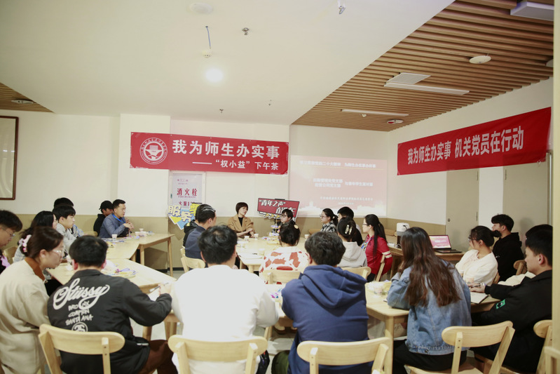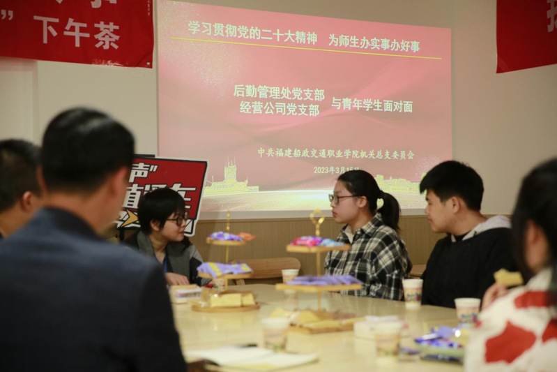 3月15日下午,“學(xué)習(xí)貫徹黨的二十大精神 為師生辦實(shí)事辦好事”機(jī)關(guān)黨員志愿服務(wù)活動(dòng)第二期如期開(kāi)展,后勤管理處黨支部、經(jīng)營(yíng)公司黨支部在教工食堂與青年學(xué)生面對(duì)面,就與學(xué)生息息相關(guān)的生活問(wèn)題進(jìn)行座談。