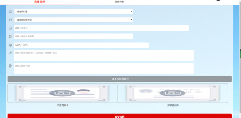 2、點(diǎn)擊智慧校園 報(bào)修平臺(tái)(請(qǐng)選擇校區(qū)、報(bào)修類型、填寫(xiě)報(bào)修人、報(bào)修電話、報(bào)修地址、報(bào)修內(nèi)容并附上問(wèn)題處圖片。根據(jù)實(shí)際情況進(jìn)行報(bào)修、請(qǐng)勿重復(fù)報(bào)修),如有疑問(wèn)可聯(lián)系物業(yè)服務(wù)電話:0591-83514173或直接到福建船政交通職業(yè)學(xué)院北區(qū)1#行政中心物業(yè)報(bào)修處報(bào)修。