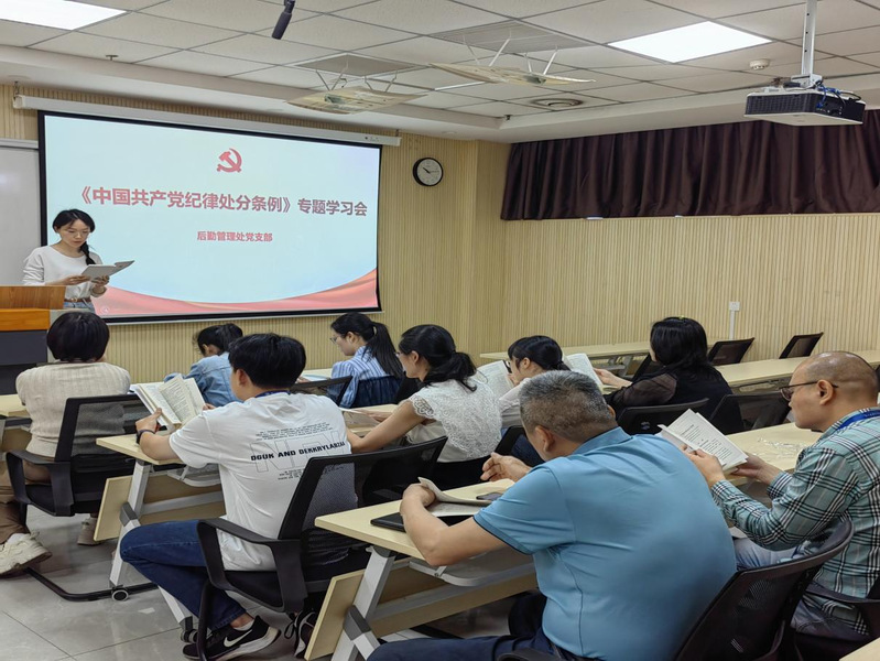 2024年5月22日,進(jìn)一步加強(qiáng)黨的紀(jì)律建設(shè),提高全體黨員干部遵規(guī)守紀(jì)意識(shí),后勤管理處黨支部組織開展學(xué)習(xí)會(huì)議,專題學(xué)習(xí)新修訂的《中國共產(chǎn)黨紀(jì)律處分條例》。后勤管理處黨支部書記??蔀橹鞒謺?huì)議,支部黨員積極參會(huì)。
