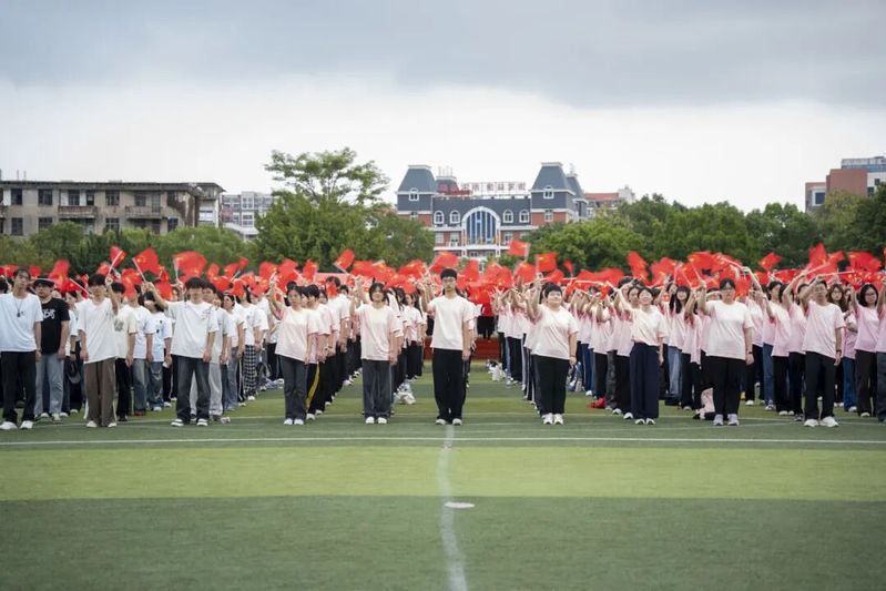 國歌余韻尚在校園回蕩,師生們已高舉國旗,將滿腔熱忱化作鏗鏘吶喊:“青春為中國式現(xiàn)代化挺膺擔(dān)當(dāng),強國復(fù)興有我!強國復(fù)興有我!強國復(fù)興有我!” 嘹亮的口號,既是對祖國的深情告白,更將復(fù)興征程上的青春誓言,牢牢鐫刻在晨光里、心底間。