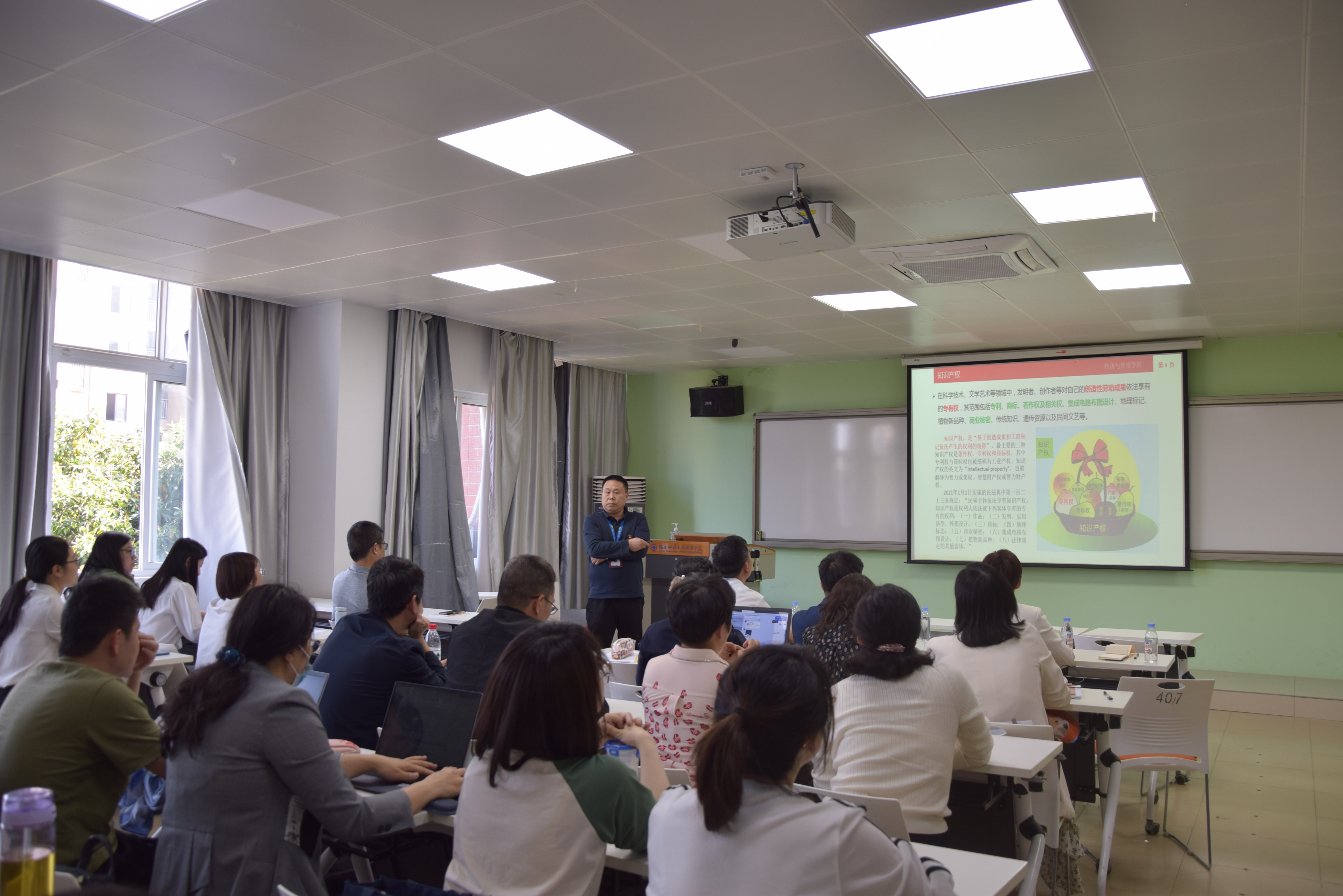 為了提高教職工的知識產(chǎn)權(quán)意識,提升科研誠信敏感度,抵制學(xué)術(shù)不端。副院長吳吉明以《知識產(chǎn)權(quán)保護與學(xué)術(shù)端正》為題,重點介紹了知識產(chǎn)權(quán)的概念和范疇以及相關(guān)法律法規(guī),介紹了學(xué)術(shù)不端的界定、典型案例及相關(guān)規(guī)定,進一步引導(dǎo)廣大教師立德為先、誠信為本、操守為重、廉潔從教。