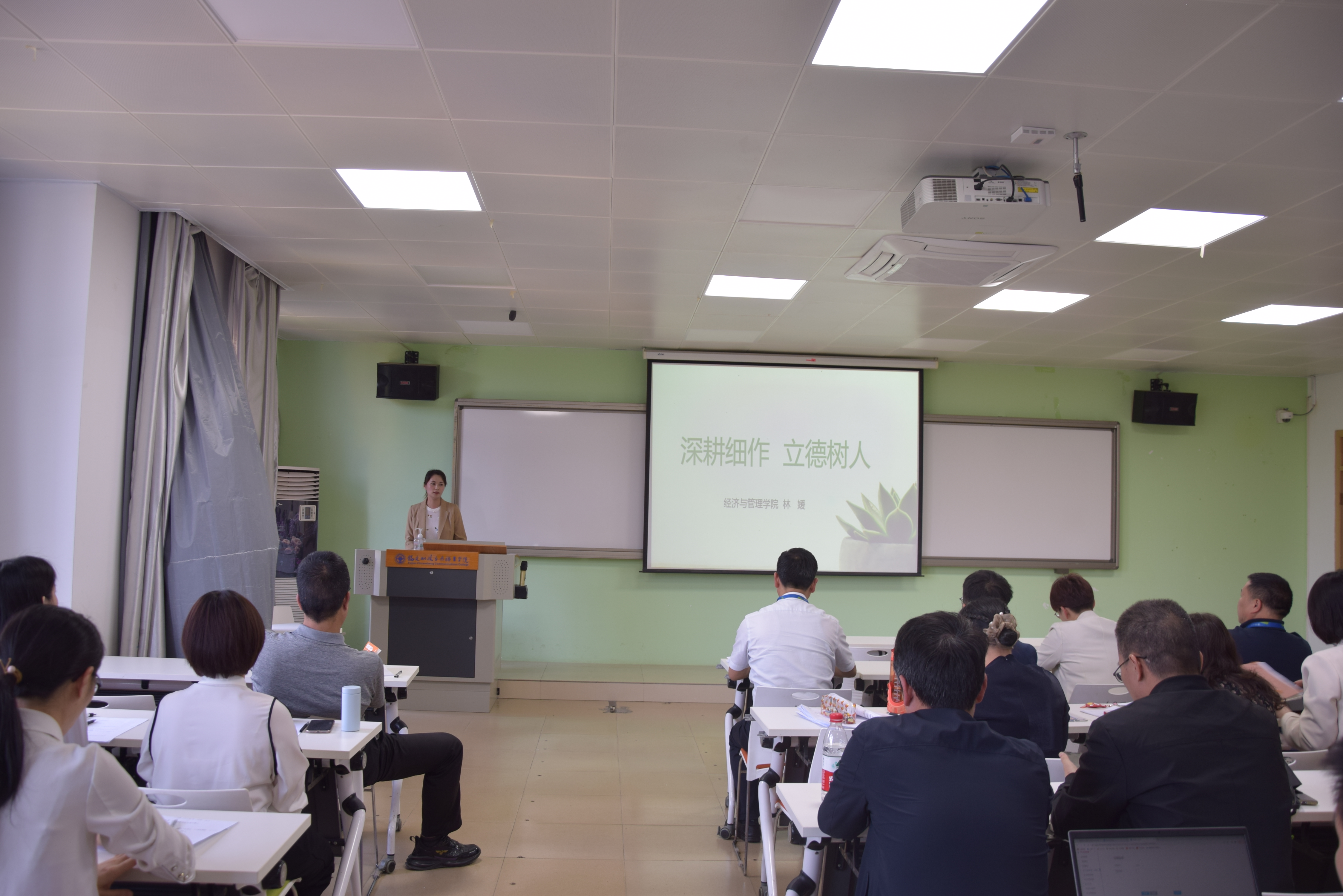 專題學(xué)習(xí)后,輔導(dǎo)員代表林媛、專任教師代表謝霓結(jié)合自身工作經(jīng)歷,分別以《深耕細(xì)作,立德樹人》《錘煉新時代師德師風(fēng),做溫暖有愛的老師》為題,以生動詳實的案例、通俗易懂的語言,分享了從教以來自己對師德的感悟,讓全體教職工體會到了師德并不是簡單地說教,而是一種精神的體現(xiàn),師德師風(fēng)也不是枯躁的理念和高舉的旗幟,它就體現(xiàn)在我們身邊,在我們的隊伍里。新時代教師應(yīng)該在三尺講臺上默默耕耘,嚴(yán)愛相濟、潤己澤人,以人格魅力呵護學(xué)生心靈,以學(xué)術(shù)造詣開啟學(xué)生智慧,讓每一個學(xué)生都健康成長。