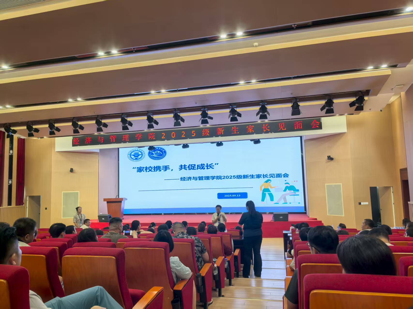 為幫助新生家長全面了解學(xué)院育人理念,凝聚家校育人合力,9月13日下午,我院在藝新樓331學(xué)術(shù)報告廳開展了“家校攜手,共促成長”2025級新生家長見面會。本次會議由學(xué)院黨總支書記陳慧主持,院長阮毅、黨總支副書記林麗萍、團委書記傅一丹、各教研室主任及新生輔導(dǎo)員出席。