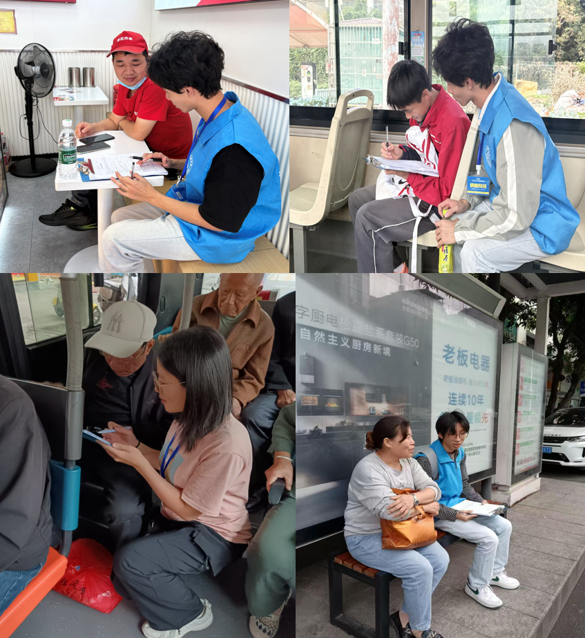 調(diào)查團(tuán)隊(duì)采用“點(diǎn)面結(jié)合、動(dòng)靜相輔”的科學(xué)方法,系統(tǒng)推進(jìn)數(shù)據(jù)采集工作。首日,團(tuán)隊(duì)深入龍賢、俊賢、西關(guān)等18個(gè)街道社區(qū),面向社區(qū)居民開展問卷調(diào)查,重點(diǎn)了解日常出行的整體滿意度與共性需求。隨后兩日,團(tuán)隊(duì)轉(zhuǎn)戰(zhàn)府頭門、永輝超市、陽光城及火車站等核心公交樞紐,在高峰與平峰時(shí)段分散布點(diǎn),確保樣本覆蓋不同線路、不同出行目的的乘客。同時(shí),團(tuán)隊(duì)分組進(jìn)行跟車調(diào)查,實(shí)地記錄車輛運(yùn)行狀況、車廂環(huán)境及乘客實(shí)時(shí)反饋,從而在靜態(tài)問卷之外,補(bǔ)充了動(dòng)態(tài)的、場景化的觀察數(shù)據(jù)。通過多層次、立體化的調(diào)查方式,有效保障了數(shù)據(jù)來源的廣泛性與結(jié)構(gòu)代表性。