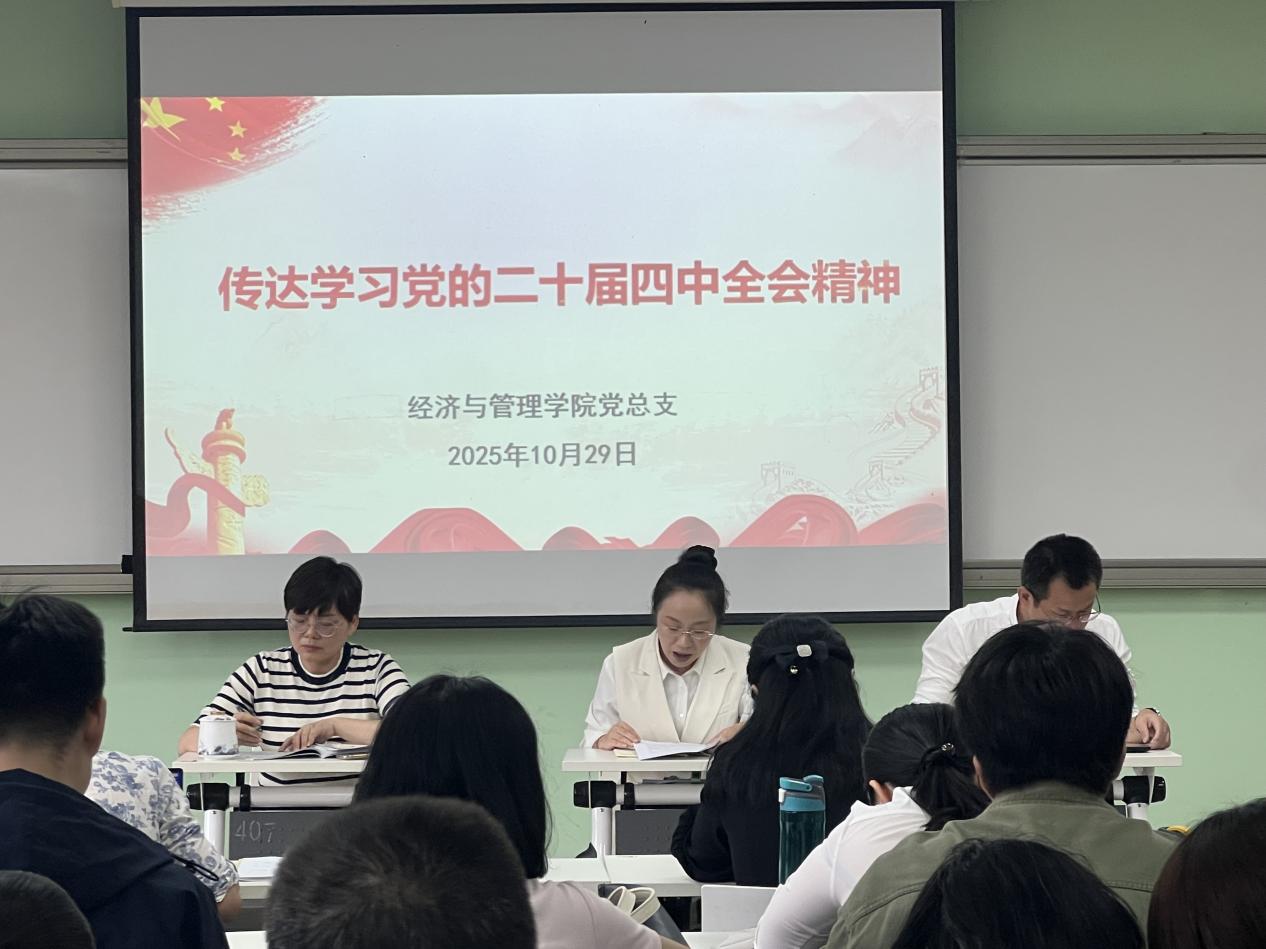 為深入學(xué)習(xí)貫徹黨的二十屆四中全會(huì)精神,切實(shí)把全院黨員干部師生的思想和行動(dòng)統(tǒng)一到全會(huì)精神上來,10月29日,經(jīng)濟(jì)與管理學(xué)院召開專題學(xué)習(xí)會(huì),黨總支書記陳慧主持會(huì)議并傳達(dá)全會(huì)核心要義,全體教師參加會(huì)議。